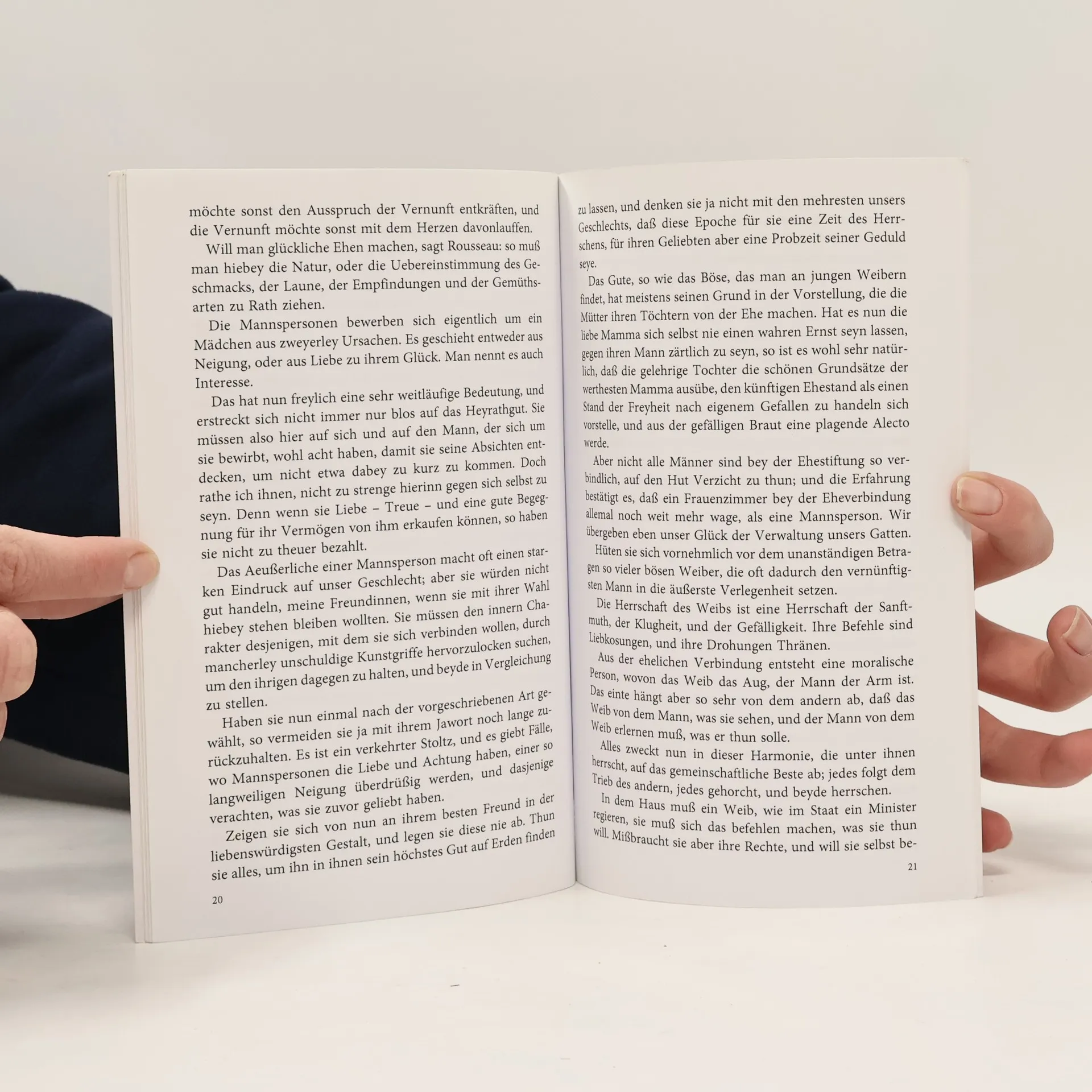 Marianne Ehrmann: Philosophie eines Weibs Edition Holzinger. Taschenbuch Berliner Ausgabe, 2015, 4. Auflage Vollstandiger, durchgesehener Neusatz mit einer Biographie der Autorin bearbeitet und eingerichtet von Michael Holzinger Erstdruck: Anonym ohne Ort und Verlag [Kempten] 1784. Textgrundlage ist die Ausgabe: Marianne Ehrmann: Philosophie eines Weibs. Von einer Beobachterin, [o. O. u. V.], 1784. Herausgeber der Reihe: Michael Holzinger Reihengestaltung: Viktor Harvion Umschlaggestaltung unter Verwendung des Bildes: Vilhelm Hammershoi, Junge Frau, 1904 Gesetzt aus Minion Pro, 11 pt.