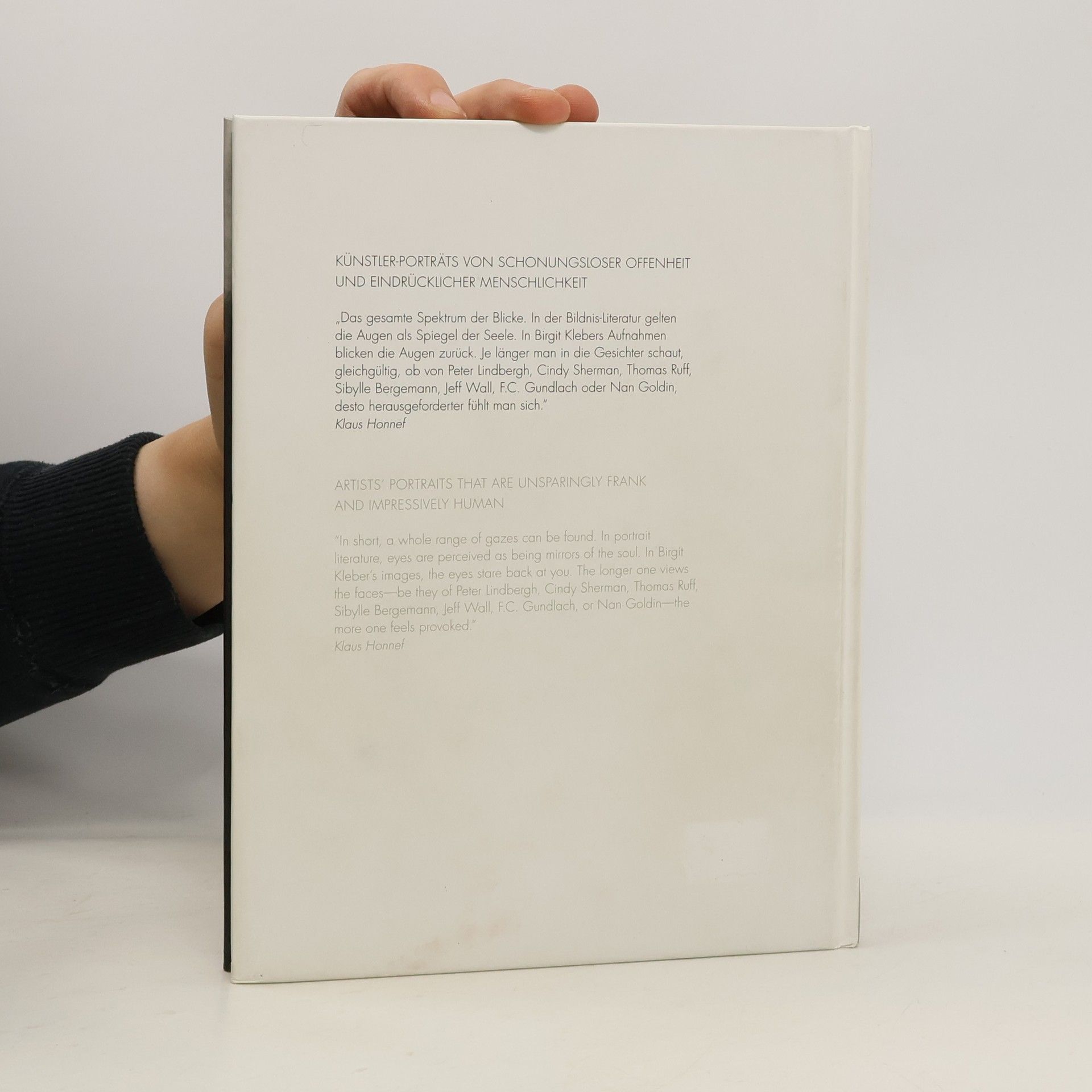 Photographers collects Birgit Kleber's close-up black-and-white portraits of the world's finest living photographers, including Anton Corbijn, Gisele Freund, Nan Goldin, F.C. Gunlach, Barbara Klemm, Saul Leiter, Boris Mikhailov, Shirin Neshat, Martin Parr, Pierre et Gilles, Robert Polidori, Thomas Ruff, Sebastiao Salgado, Cindy Sherman, Juergen Teller and Jeff Wall.