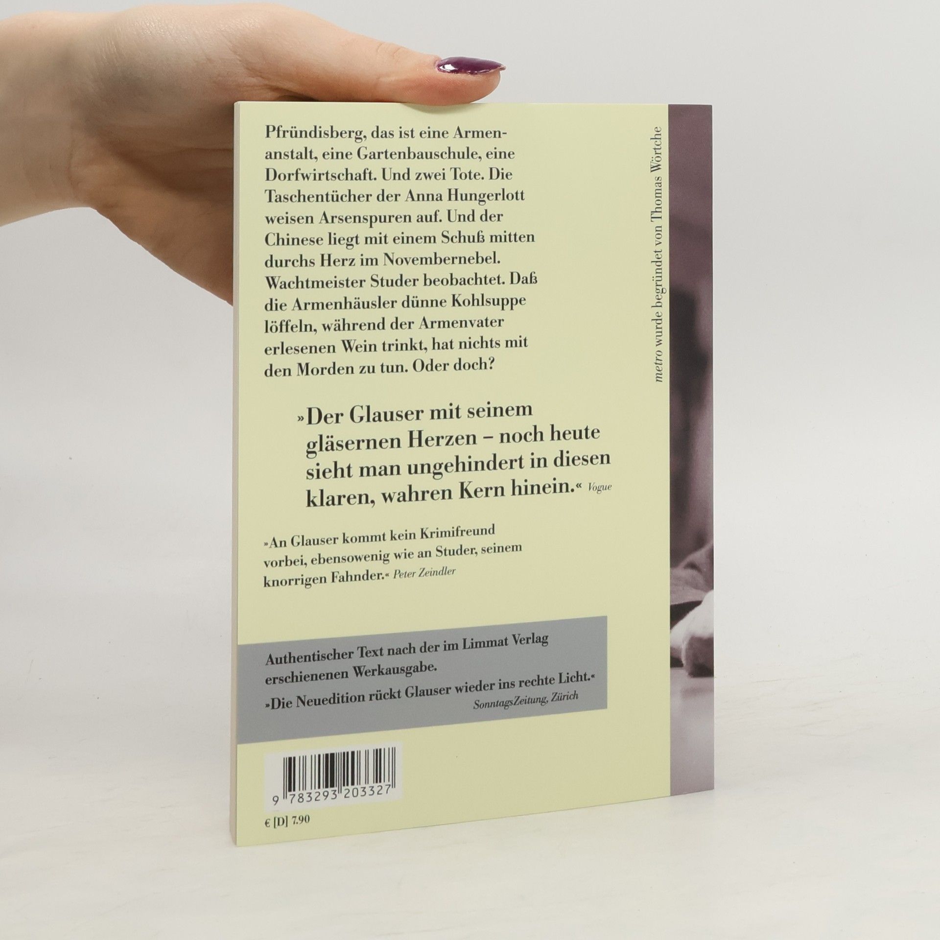 Pfründisberg, das ist eine Armenanstalt, eine Gartenschule, eine Dorfwirtschaft. Und zwei Tote. Die Taschentücher der Anna Hungerlott weisen Arsenspuren auf. Und der Chinese liegt mit einem Schuss mitten durchs Herz im Novembernebel. Wachtmeister Studer beobachtet. Dass die Armenhäusler dünne Kohlsuppe löffeln, während der Armenvater erlesenen Wein trinkt, hat nichts mit den Morden zu tun. Oder doch?