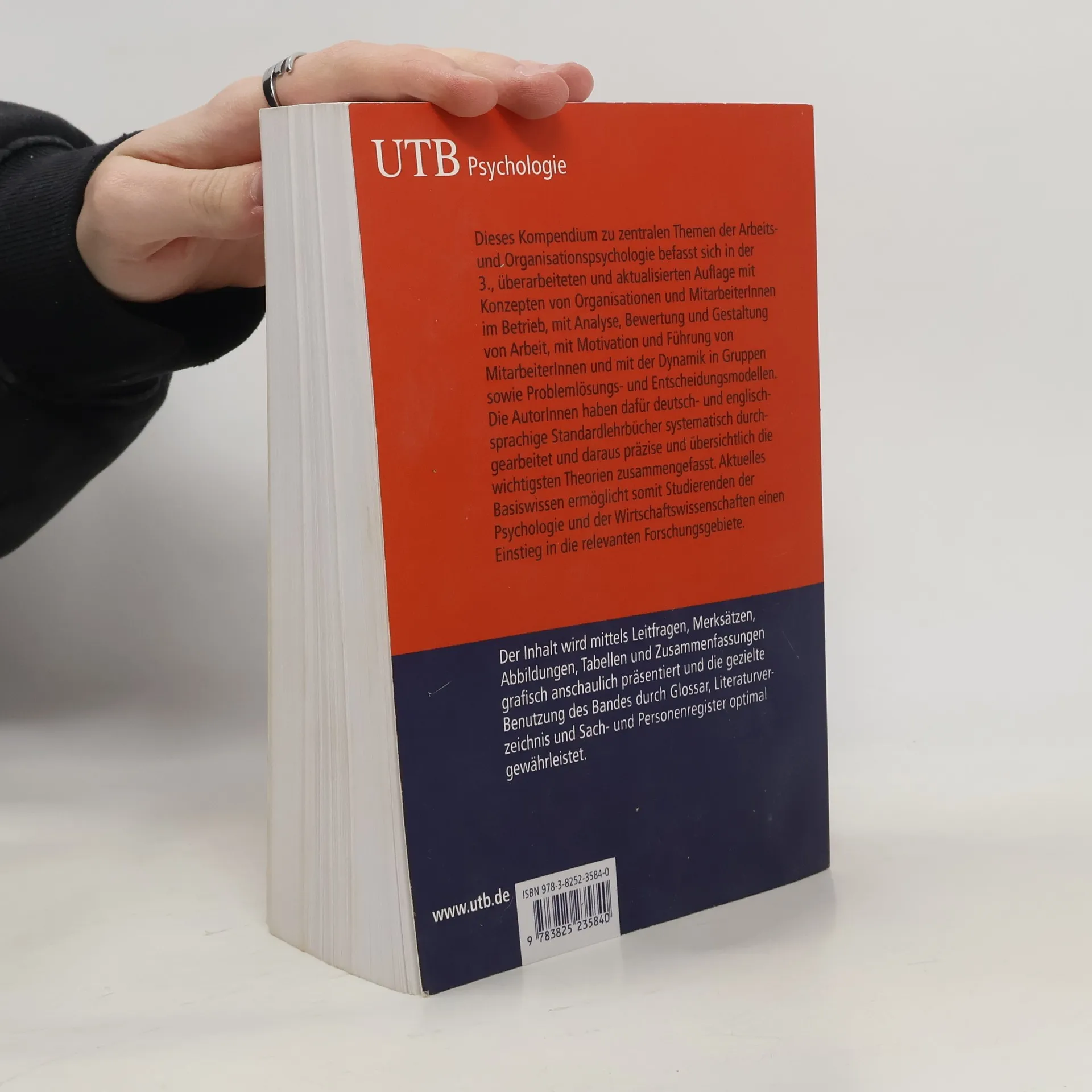 Dieses Kompendium zu zentralen Themen der Arbeits- und Organisationspsychologie befasst sich in der 3., überarbeiteten und aktualisierten Auflage mit Konzepten von Organisationen und MitarbeiterInnen im Betrieb, mit Analyse, Bewertung und Gestaltung von Arbeit, mit Motivation und Führung von MitarbeiterInnen und mit der Dynamik in Gruppen sowie Problemlösungs- und Entscheidungsmodellen. Die AutorInnen haben dafür deutsch- und englischsprachige Standardlehrbücher systematisch durchgearbeitet und daraus präzise und übersichtlich die wichtigsten Theorien zusammengefasst. Aktuelles Basiswissen ermöglicht somit Studierenden der Psychologie und der Wirtschaftswissenschaften einen Einstieg in die relevanten Forschungsgebiete. Der Inhalt wird mittels Leitfragen, Merksätzen, Abbildungen, Tabellen und Zusammenfassungen grafisch anschaulich präsentiert und die gezielte Benutzung des Bandes durch Glossar, Literaturverzeichnis und Sach- und Personenregister optimal gewährleistet.