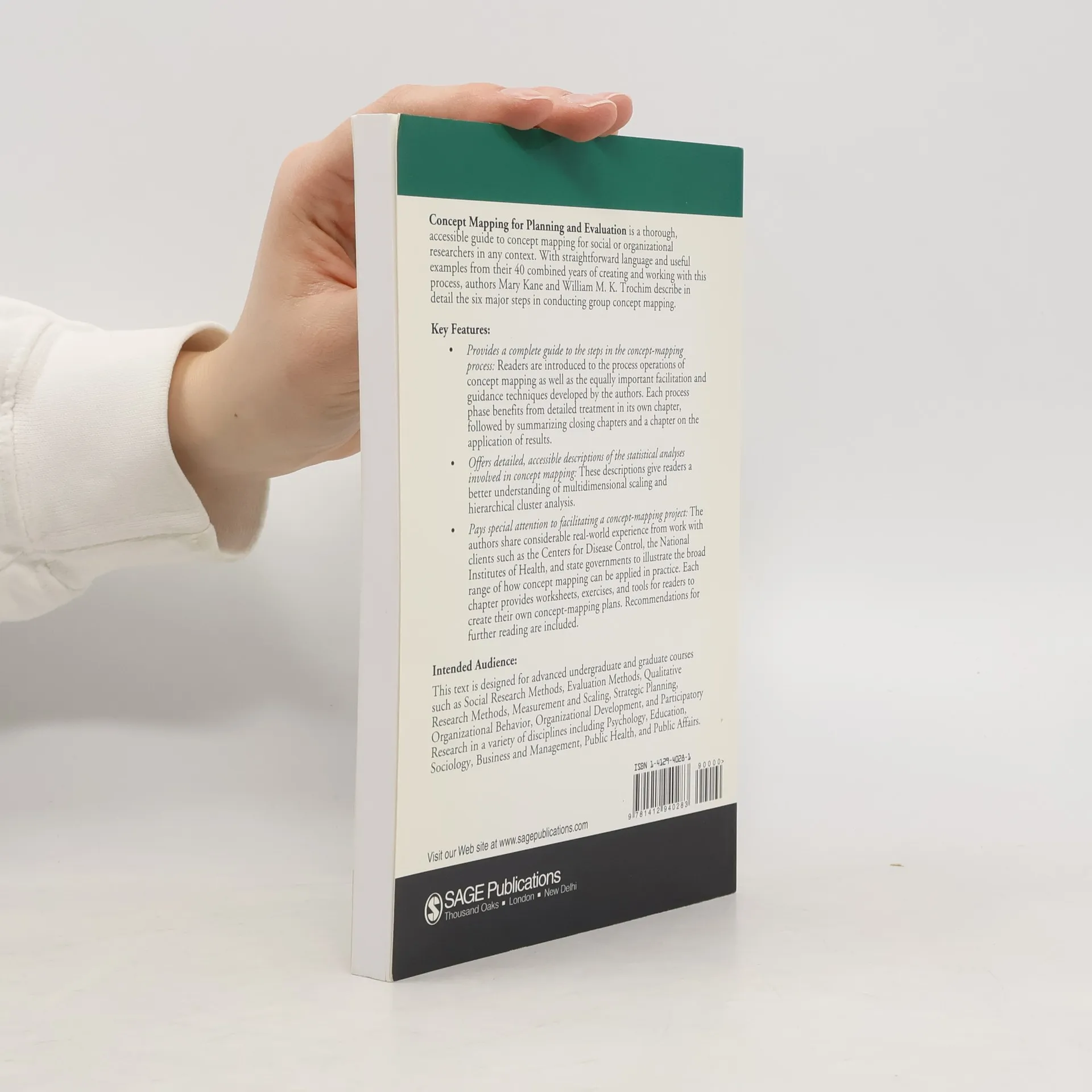 <b> </b>Concept Mapping for Planning and Evaluation is a thorough, accessible guide to concept mapping in its most useful form for social or organizational researchers in any context. With straightforward language and useful examples from their 40 combined years of creating and working with this process, authors Mary Kane and William M. K. Trochim describe in detail the six major steps in the conduct of group concept mapping. is a thorough, accessible guide to concept mapping in its most useful form for social or organizational researchers in any context. With straightforward language and useful examples from their 40 combined years of creating and working with this process, authors Mary Kane and William M. K. Trochim describe in detail the six major steps in the conduct of group concept mapping.