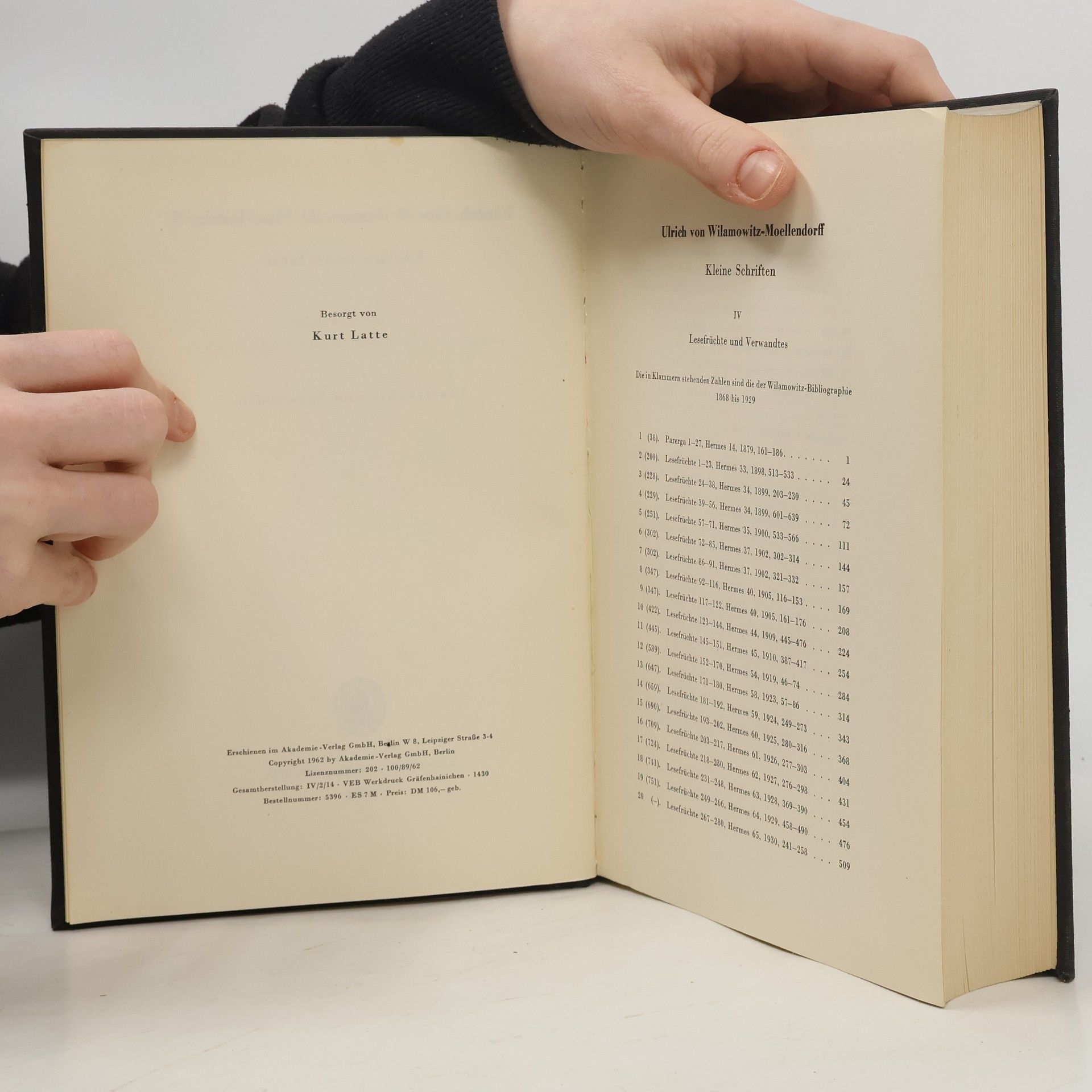 Kleine Schriften, Ulrich von Wilamowitz-Moellendorff