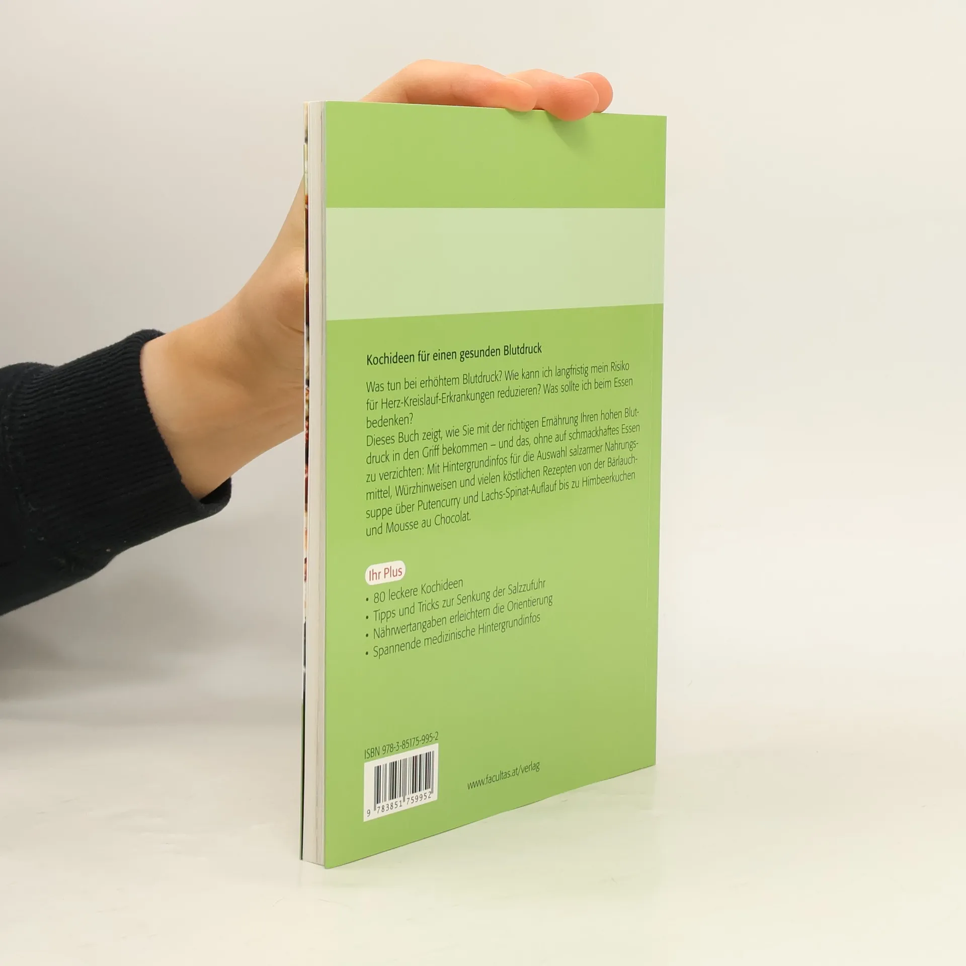 Kochideen für einen gesunden Blutdruck Was tun bei erhöhtem Blutdruck? Wie kann ich langfristig mein Risiko für Herz-Kreislauf-Erkrankungen reduzieren? Was sollte ich beim Essen bedenken? Dieses Buch zeigt, wie Sie mit der richtigen Ernährung Ihren hohen Blutdruck in den Griff bekommen – und das, ohne auf schmackhaftes Essen zu Mit Hintergrundinfos für die Auswahl salzarmer Nahrungsmittel, Würzhinweisen und vielen köstlichen Rezepten von der Bärlauchsuppe über Putencurry und Lachs-Spinat-Auflauf bis zu Himbeerkuchen und Mousse au Chocolat. Ihr Plus 80 leckere Kochideen Tipps und Tricks zur Senkung der Salzzufuhr Nährwertangaben erleichtern die Orientierung Spannende medizinische Hintergrundinfos