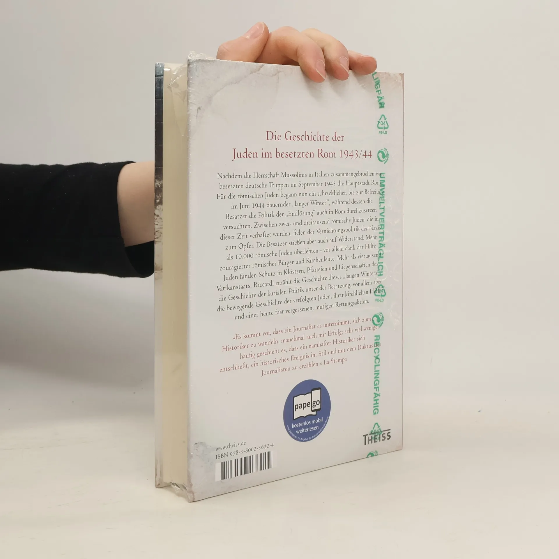 Nachdem die Herrschaft Mussolinis in Italien zusammengebrochen war, besetzten deutsche Truppen im September 1943 die Hauptstadt Rom. Für die römischen Juden begann nun ein schrecklicher, bis zur Befreiung im Juni 1944 dauernder ›langer Winter‹, während dessen die Besatzer die Politik der ›Endlösung‹ auch in Rom durchzusetzen versuchten. Zwischen zwei- und dreitausend römische Juden, die in dieser Zeit verhaftet wurden, fielen der Vernichtungspolitik der Nazis zum Opfer. Die Besatzer stießen aber auch auf Widerstand. Mehr als 10.000 römische Juden überlebten – vor allem dank der Hilfe couragierter römischer Bürger und Kirchenleute. Mehr als viertausend Juden fanden Schutz in Klöstern, Pfarreien und Liegenschaften des Vatikanstaats. Riccardi erzählt die Geschichte der kurialen Politik unter der Besatzung, vor allem aber die bewegende Geschichte der verfolgten Juden, ihrer kirchlichen Helfer und einer heute fast vergessenen, mutigen Rettungsaktion.