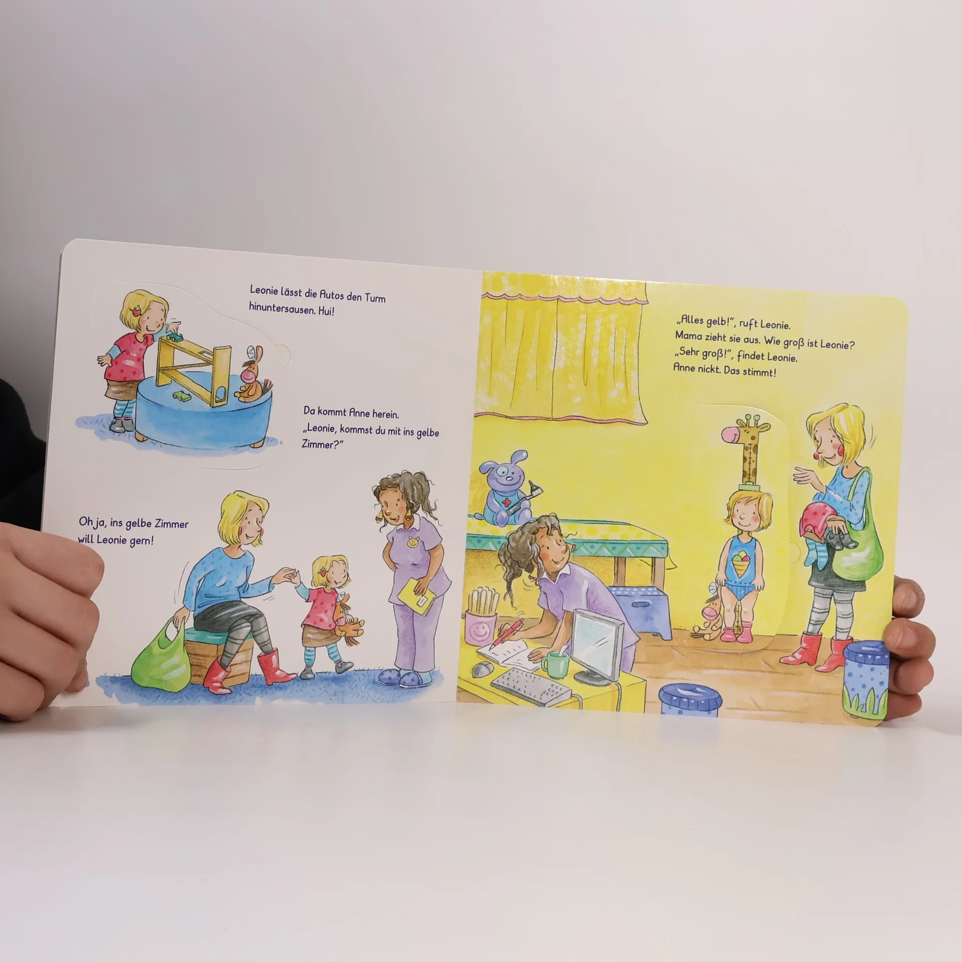 Heute geht Leonie zum Kinderarzt. Leonie ist neugierig, aber auch ein bisschen aufgeregt. Zum Glück ist Mama bei ihr. Und schnell merkt Leonie, dass Doktor Moll sehr nett ist und die Untersuchungen auch gar nicht wehtun. Leonie-Geschichten sind pädagogisch durchdachte erste Kinderalltagsgeschichten, mit Bildern in erfrischenden, leuchtend klaren Farben und mit vielen lustigen Details. Viele Klappen wecken die Neugier und auf jeder Buchrückseite gibt es ein kleines Suchbild. Leonie ist ein natürliches, offenherziges, frech-niedliches Kind mit sonnigem Gemüt. Und wie nebenbei hilft sie den kleinen Lesern, die eigene Alltagswirklichkeit zu meistern. Wem Jakob für kleine Jungs gefällt, der wird Leonie für kleine Mädchen lieben!