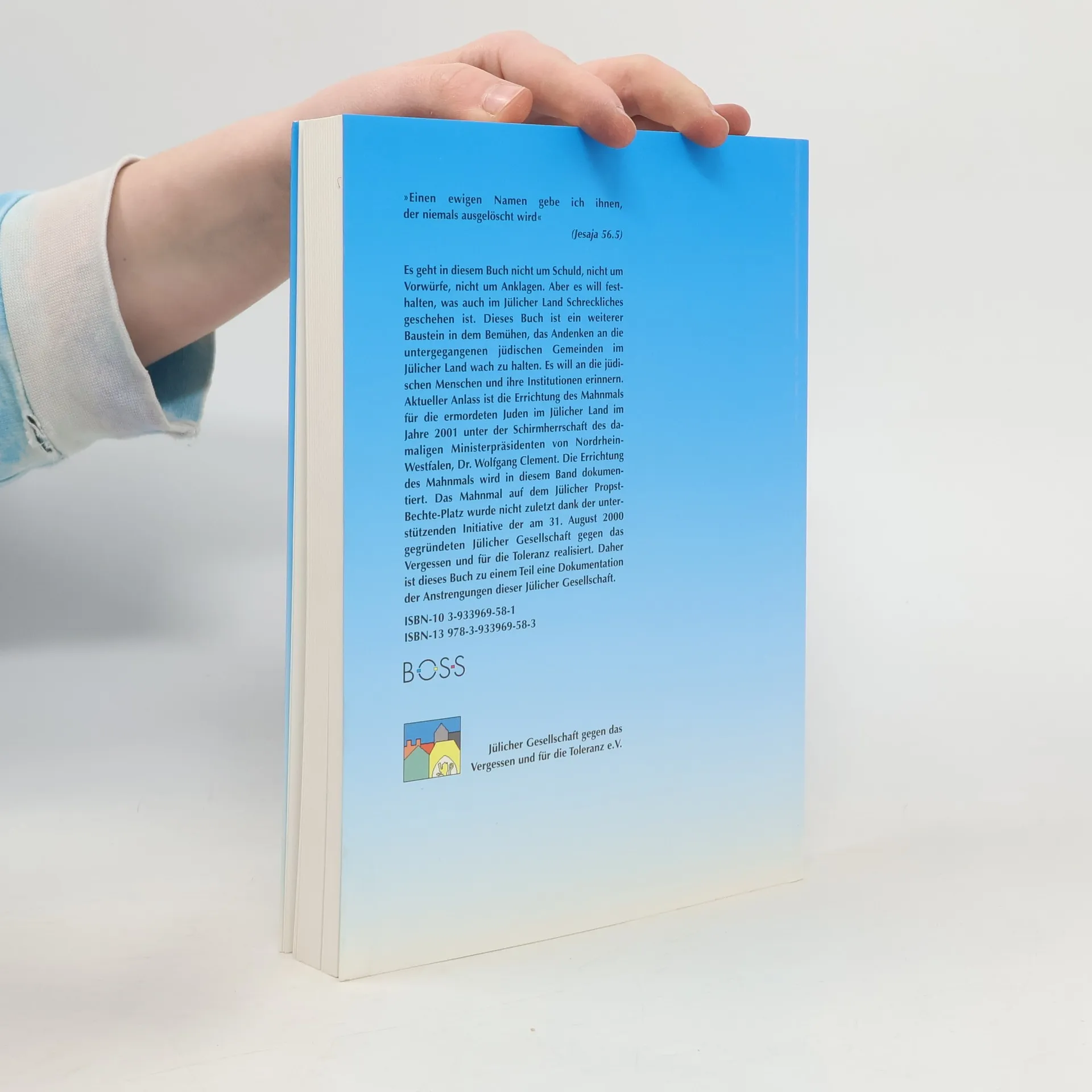 Es geht in diesem Buch nicht um Schuld, nicht um Vorwürfe, nicht um Anklagen. Aber es will festhalten, was auch im Jülicher Land Schreckliches geschehen ist. Dieses Buch ist ein weiterer Baustein in dem Bemühen, das Andenken an die untergegangenen jüdischen Gemeinden im Jülicher Land wach zu halten. Aktueller Anlass ist die Errichtung des Mahnmals für die ermordeten Juden im Jülicher Land im Jahre 2001 unter der Schirmherrschaft des damaligen Ministerpräsidenten des Landes NRW, Dr. Wolfgang Clement.