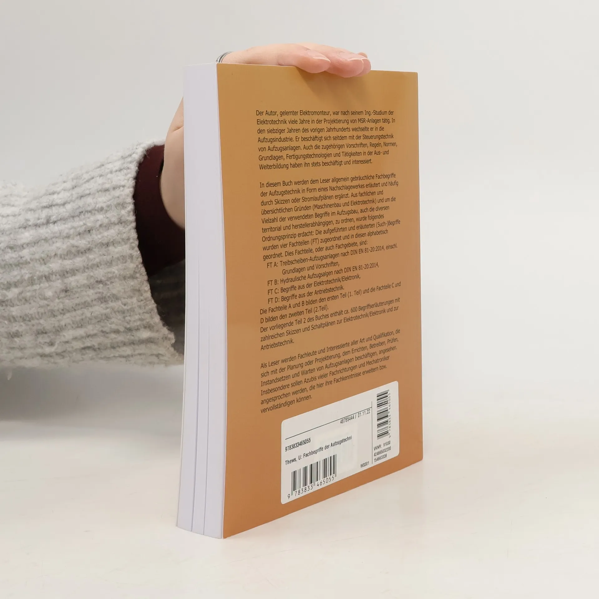 Es werden allgemein gebräuchliche Fachbegriffe der Aufzugstechnik erläutert und häufig durch Skizzen oder Stromlaufpläne ergänzt. Die Begriffe wurden vier Fachteilen zugeteilt und in diesen alphabetisch geordnet. Diese Fachteile oder auch Fachgebiete - FT Treibscheiben-Aufzugsanlagen nach DIN EN 81-1, - FT Hydraulishe Aufzugsanlagen nach DIN EN 81-2, - FT Elektrotehnik / Elektronik, - FT Antriebstechnik. Die Fachteile A und B bilden den ersten Teil (1. Buch) und die Fachteile C und D den zweiten Teil (2. Buch).