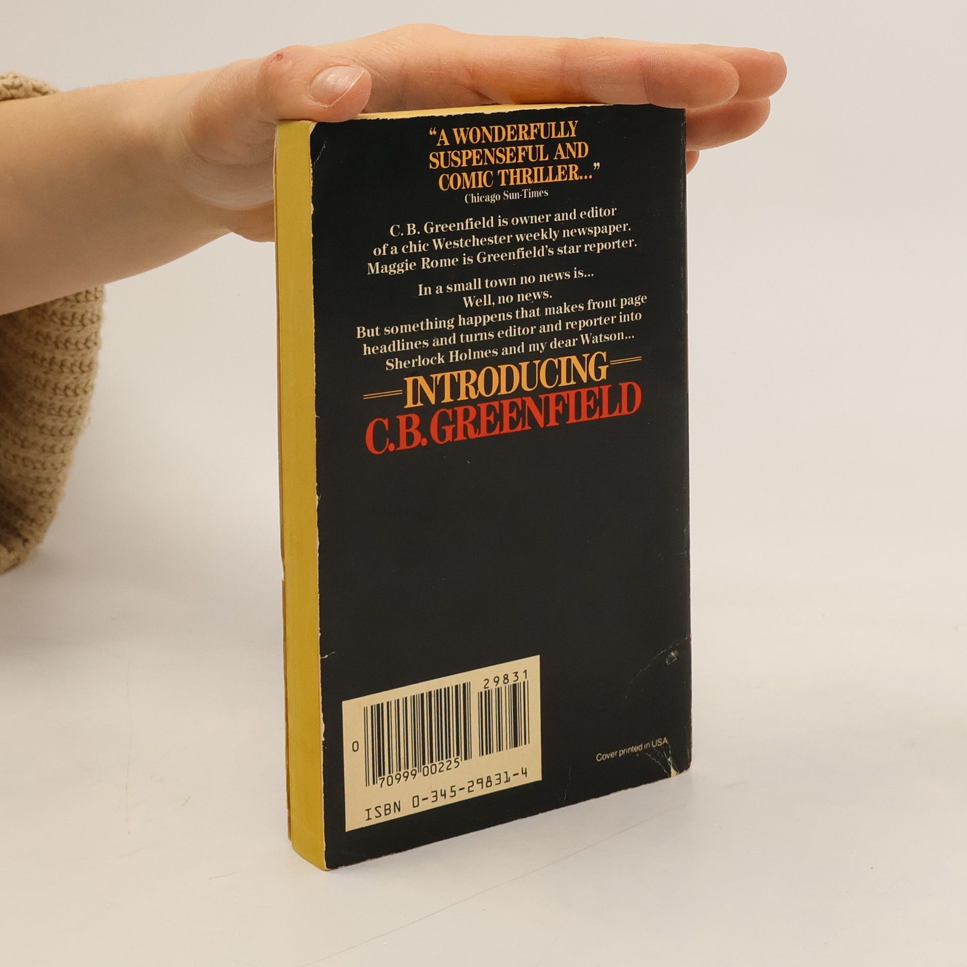 C. B Greenfield is owner and editor of a chic Westchester weekly newspaper. Maggie Rome is Greenfield's star reporter. In a small town no news is...Well, no news. But something happens that makes front page headlines and turns editor and reporter into Sherlock Holmes and my dear Watson...