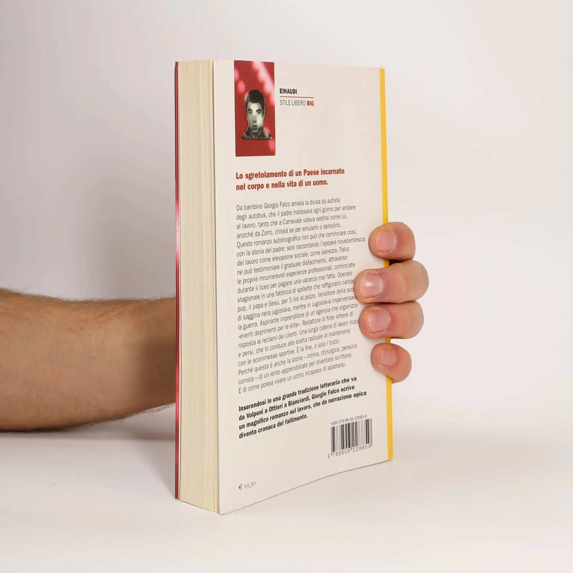 Lo sgretolamento di un Paese incarnato nel corpo e nella vita di un uomo. Inserendosi in una grande tradizione letteraria che va da Volponi a Ottieri a Bianciardi, Giorgio Falco scrive un magnifico romanzo sul lavoro, che da narrazione epica diventa cronaca del fallimento. Da bambino Giorgio Falco amava la divisa da autista degli autobus, che il padre indossava ogni giorno per andare al lavoro, tanto che a Carnevale voleva vestirsi come lui, anziché da Zorro, chissà se per emularlo o demolirlo. Questo romanzo autobiografico non può che cominciare così, con la storia del padre: solo raccontando l'epopea novecentesca del lavoro come elevazione sociale, come salvezza, Falco ne può testimoniare il graduale disfacimento, attraverso le proprie innumerevoli esperienze professionali, cominciate durante il liceo per pagarsi una vacanza mai fatta. Operaio stagionale in una fabbrica di spillette che raffigurano cantanti pop, il papa e Gesù, per 5 lire al pezzo. Venditore della scopa di saggina nera jugoslava, mentre in Jugoslavia imperversava la guerra. Aspirante imprenditore di un'agenzia che organizza «eventi deprimenti per le élite». Redattore di finte lettere di risposta ai reclami dei clienti. Una lunga catena di lavori iniziati e persi, che lo conduce alla scelta radicale di mantenersi con le scommesse sportive. È la fine, o solo l'inizio. Perché questa è anche la storia – intima, chirurgica, persino comica – di un lento apprendistato per diventare scrittore. E di come possa vivere un uomo incapace di adattarsi.