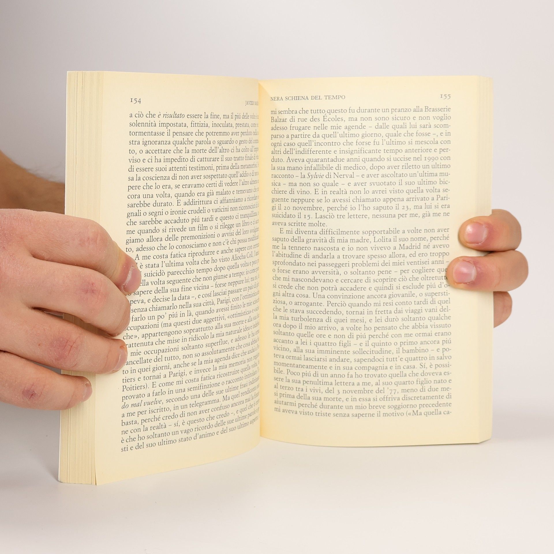 E così, con la sua inesauribile capacità affabulatoria e con il suo stile unico e raffinatissimo, ci racconta di vecchi libri che si fanno scoprire quasi intenzionalmente, degli autori di quei libri, dei libri che lui stesso ha scritto; ma non solo: di scrittori e critici come Francisco Rico, del suo amico e maestro Juan Benet, di John Gawsworth, ma anche di Francisco Franco, del fratellino Julianín morto a tre anni, di sua madre, dell'eredità del titolo di re dell'isola di Redonda... E la voce di Marías è qui piú sorprendente che mai, come se fosse «una voce capricciosa e imprevedibile ma che tutti conosciamo, la voce del tempo quando ancora non è passato né si è perduto e forse per questo neppure è tempo, forse lo è soltanto quello che è trascorso e può essere raccontato o cosí sembra, e che per questo è l'unico ambiguo».