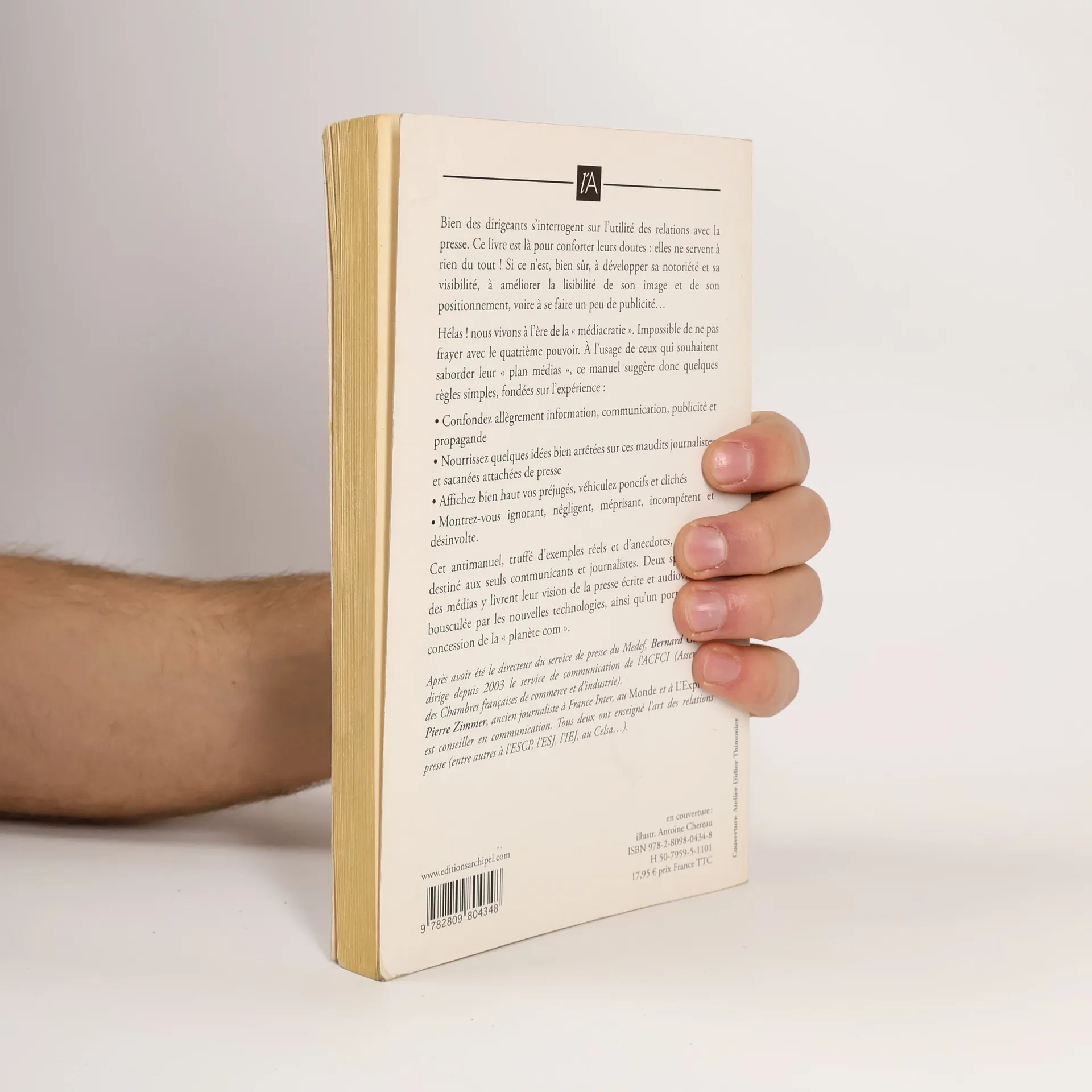 A quoi peuvent bien servir les relations avec la presse ? Ce livre est fait pour conforter les doutes: non, les relations avec la presse ne servent � rien ! Si ce n'est � d�velopper sa notori�t� et sa visibilit�, � am�liorer la lisibilit� de son image et de son positionnement, voire � se faire un peu de publicit�. Il est donc urgent de s'en passer, pour trois bonnes raisons: 1�) qui dit relations dit d�pendance et soumission; 2�) qui dit presse dit journalistes, engeance infr�quentable; 3�) il existe bien d'autres moyens de se faire conna�tre. Toutefois, si vous ne pouvez y couper, voici comment saborder votre plan m�dia en beaut�, en appliquant quelques r�gles simples... - Confondez all�grement information et communication, publicit� et propagande, - Affichez pr�jug�s et poncifs sur les journalistes - Montrez-vous m�prisant, et d�sinvolte. Alors que nous vivons � l'heure de la � m�diacratie �, les relations avec l'omnipr�sent � 4e pouvoir � demeurent un champ d'�tude en friche. Cet antimanuel, humoristique mais pas trop, truff� d'exemples r�els et d'anecdotes v�cues, n'est pas destin� aux seuls communicants et journalistes. Mitonn� par deux sp�cialistes des m�dias, il a pour objet cach� de r�v�ler les rouages des rapports conflictuels entre information et communication, deux bestioles � ne pas confondre. Bernard Giroux et Pierre Zimmer proposent un panorama de la presse, bouscul�e par les nouvelles technologies de l'information, ainsi qu'un portrait de la � plan�te com �, ast�ro�de nombriliste que tout un chacun est amen� � fouler un jour ou l'autre.