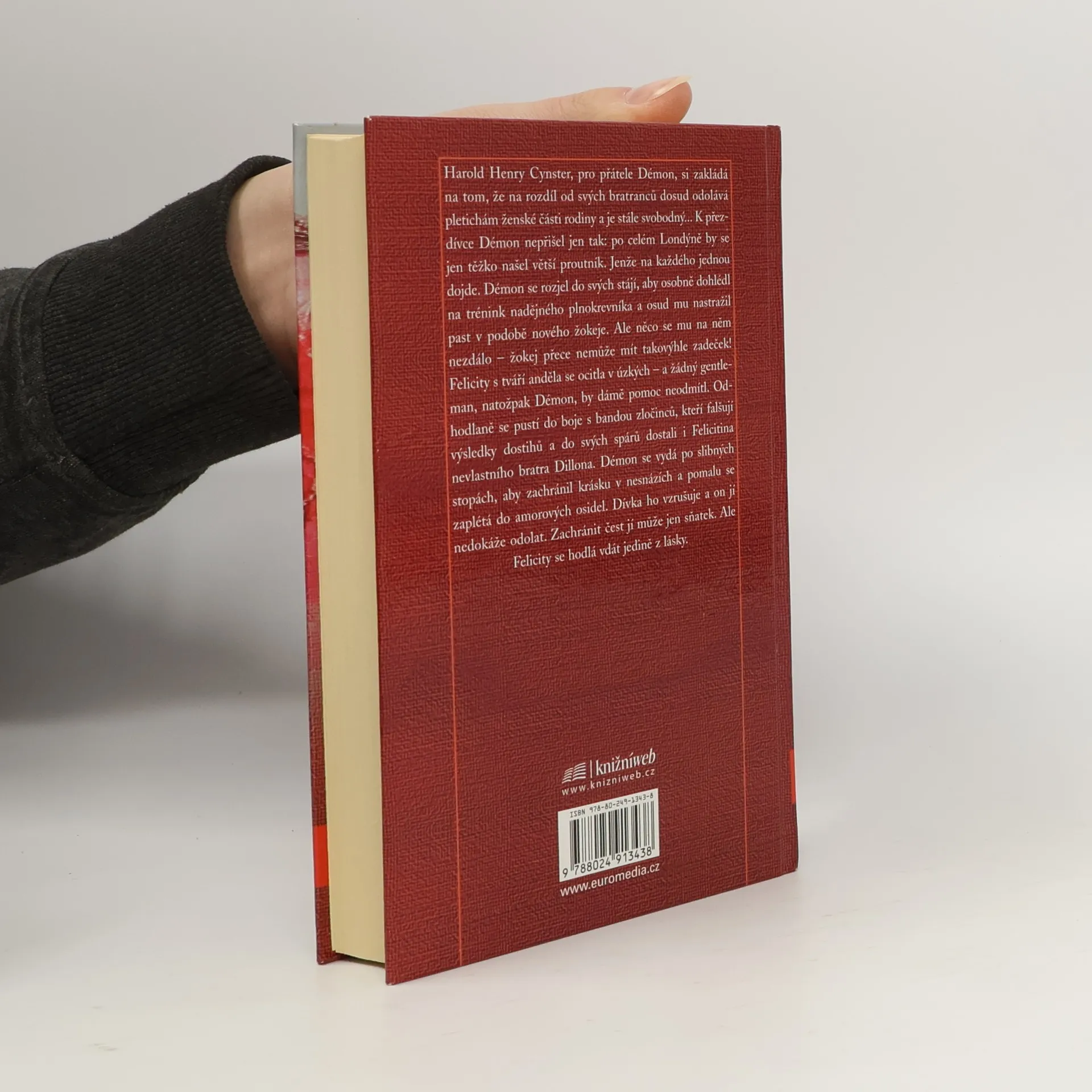 Harold Henry Cynster, pro přátele Démon, si zakládá na tom, že na rozdíl od svých bratranců dosud odolává pletichám ženské části rodiny a je stále svobodný... K přezdívce Démon nepřišel jen tak: po celém Londýně by se jen těžko našel větší proutník. Jenže na každého jednou dojde. Démon se rozjel do svých stájí, aby osobně dohlédl na trénink nadějného plnokrevníka a osud mu nastražil past v podobě nového žokeje. Ale něco se mu na něm nezdálo – žokej přece nemůže mít takovýhle zadeček! Felicity s tváří anděla se ocitla v úzkých – a žádný gentleman, natožpak Démon, by dámě pomoc neodmítl. Ohodlaně se pustí do boje s bandou zločinců, kteří falšují výsledky dostihů a do svých spárů dostali i Felicitina nevlastního bratra Dillona. Démon se vydá po slibných stopách, aby zachránil krásku v nesnázích a pomalu se zaplétá do amorových osidel. Dívka ho vrušuje a on jí nedokáže odolat. Zachránit čest jí může jen sňatek. Ale Felicity se hodlá vdát jedině z lásky.
