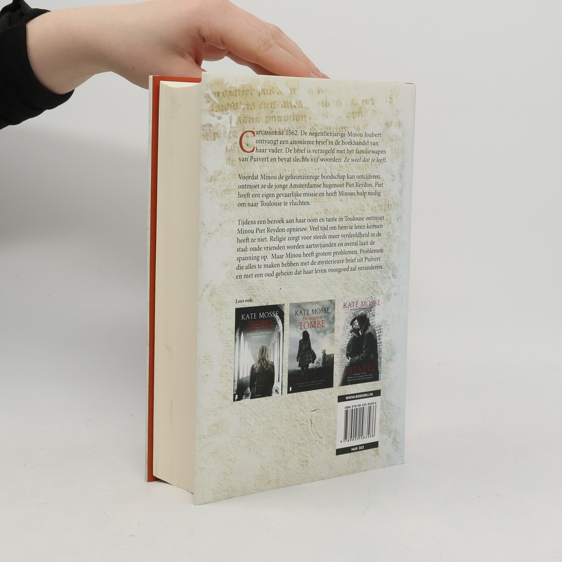 Carcassonne 1562. De negentienjarige Minou Joubert ontvangt een anonieme brief in de boekhandel van haar vader. De brief is verzegeld met het familiewapen van Puivert en bevat slechts vijf woorden: Ze weet dat je leeft. Voordat Minou de geheimzinnige boodschap kan ontcijferen ontmoet ze de jonge Amsterdamse hugenoot Piet Reydon. Piet heeft een gevaarlijke missie en heeft Minous hulp nodig om naar Toulouse te vluchten. Tijdens een bezoek aan haar ook en tante in Toulouse ontmoet Milou Piet Reydon opnieuw. Veel tijd om hem te leren kennen heeft ze niet. Religie zorgt voor steeds meer verdeeldheid in de stad: oude vrienden worden aartsvijanden en overal laait de spanning op. Maar Minou heeft grotere problemen. Problemen die alles te maken hebben met de mysterieuze brief uit Puivert en met een oud geheim dat haar leven voorgoed zal veranderen.