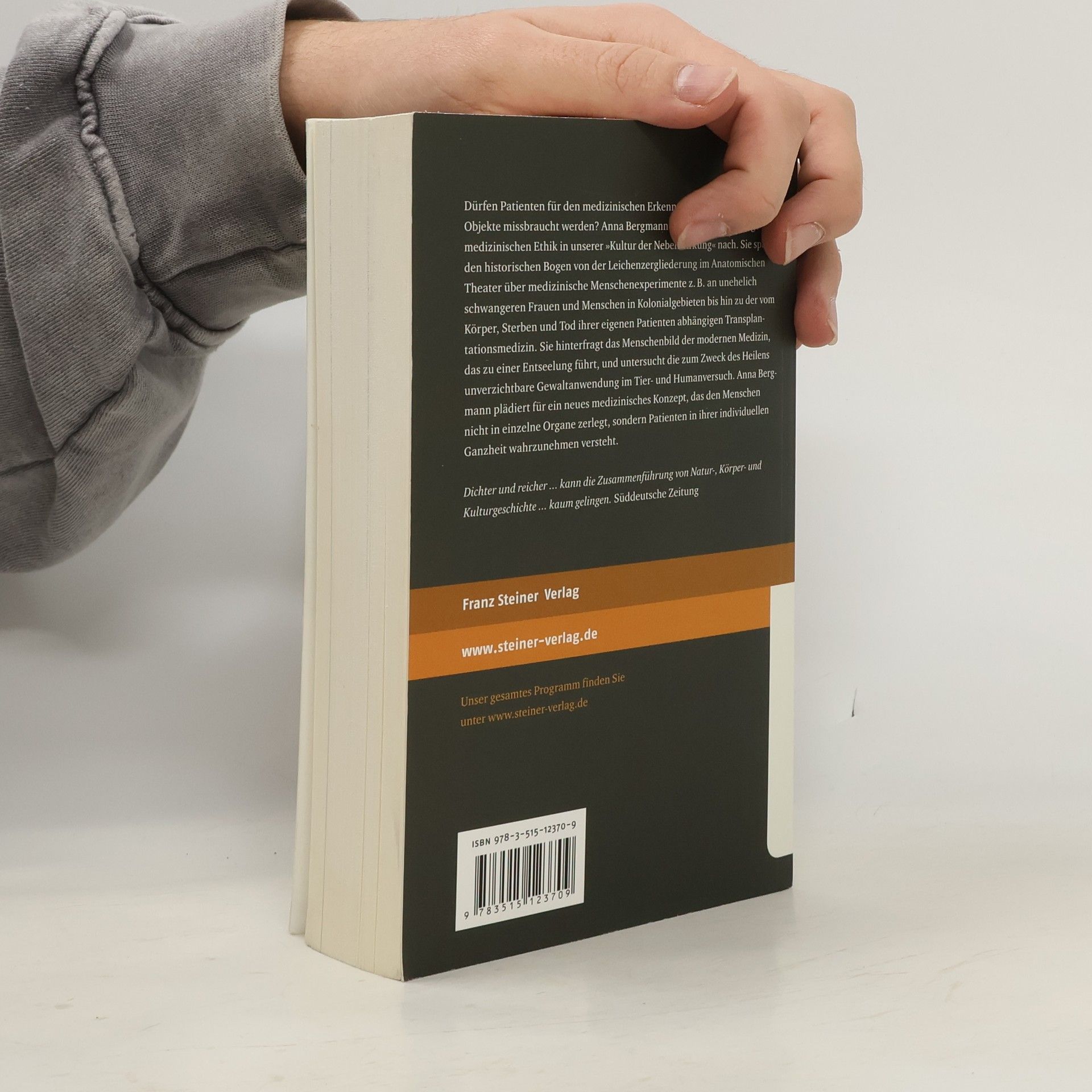 Dürfen Patienten für den medizinischen Erkenntnisgewinn als bloße Objekte missbraucht werden? Anna Bergmann geht dieser Grundfrage der medizinischen Ethik in unserer „Kultur der Nebenwirkung“ nach. Sie spannt den historischen Bogen von der Leichenzergliederung im Anatomischen Theater über medizinische Menschenexperimente z. B. an unehelich schwangeren Frauen und Menschen in Kolonialgebieten bis hin zu der vom Körper, Sterben und Tod ihrer eigenen Patienten abhängigen Transplantationsmedizin. Sie hinterfragt das Menschenbild der modernen Medizin, das zu einer Entseelung führt, und untersucht die zum Zweck des Heilens unverzichtbare Gewaltanwendung im Tier- und Humanversuch. Anna Bergmann plädiert für ein neues medizinisches Konzept, das den Menschen nicht in einzelne Organe zerlegt, sondern Patienten in ihrer individuellen Ganzheit wahrzunehmen versteht.
