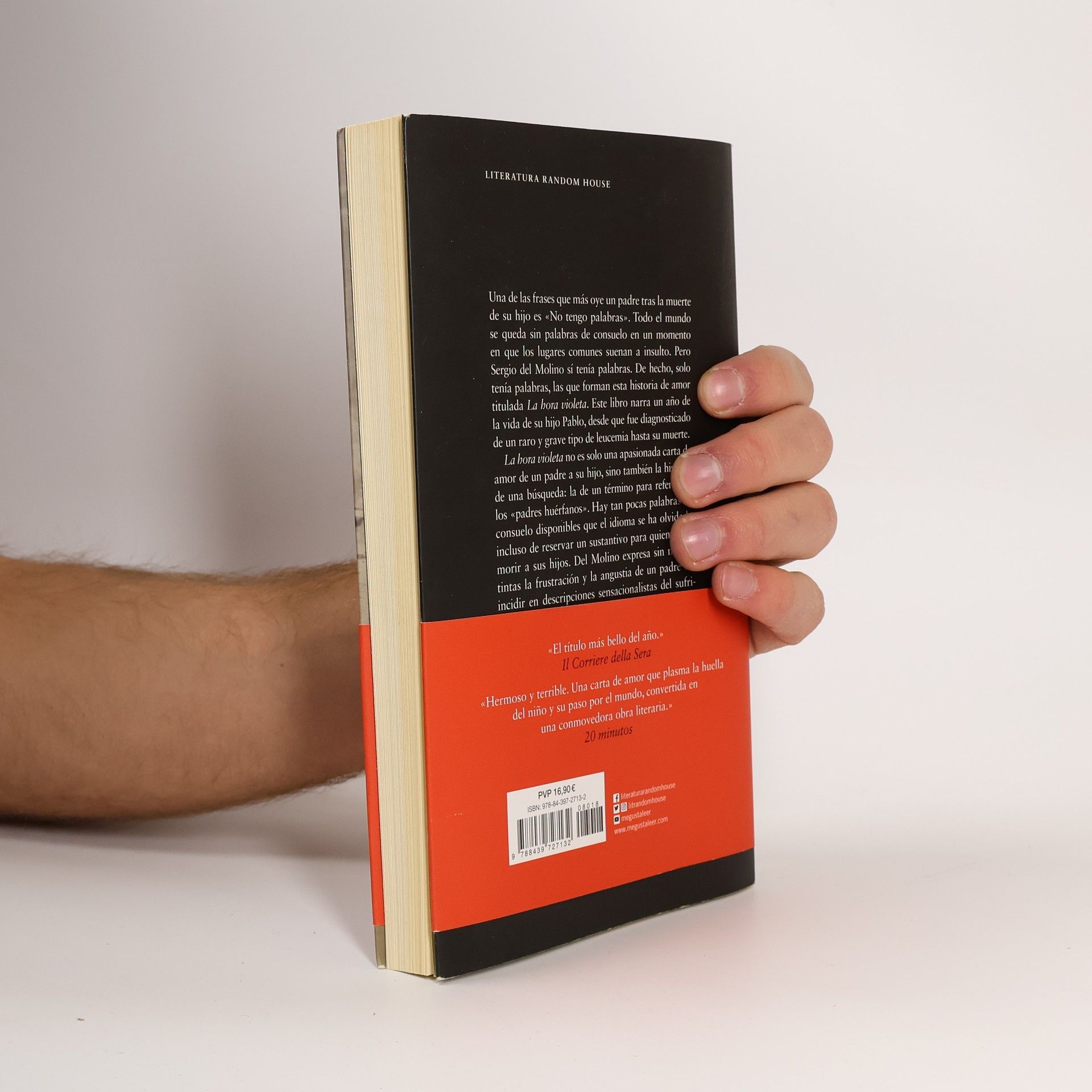 Una de las frases que más oye un padre tras la muerte de su hijo es «No tengo palabras». Todo el mundo se queda sin palabras de consuelo en un momento en que los lugares comunes suenan a insulto. Pero Sergio del Molino sí tenía palabras. De hecho, solo tenía palabras, las que forman esta historia de amor titulada La hora violeta. Este libro narra un año de la vida de su hijo Pablo, desde que fue diagnosticado de un raro y grave tipo de leucemia hasta su muerte. La hora violeta no es solo una apasionada carta de amor de un padre a su hijo, sino también la historia de una búsqueda: la de un término para referirse a los «padres huérfanos». Hay tan pocas palabras de consuelo disponibles que el idioma se ha olvidado incluso de reservar un sustantivo para quienes ven morir a sus hijos. Del Molino expresa sin medias tintas la frustración y la angustia de un padre sin incidir en descripciones sensacionalistas del sufrimiento de su hijo. El resultado son unas emocionantes memorias que trascienden la muerte del niño al que están dedicadas.