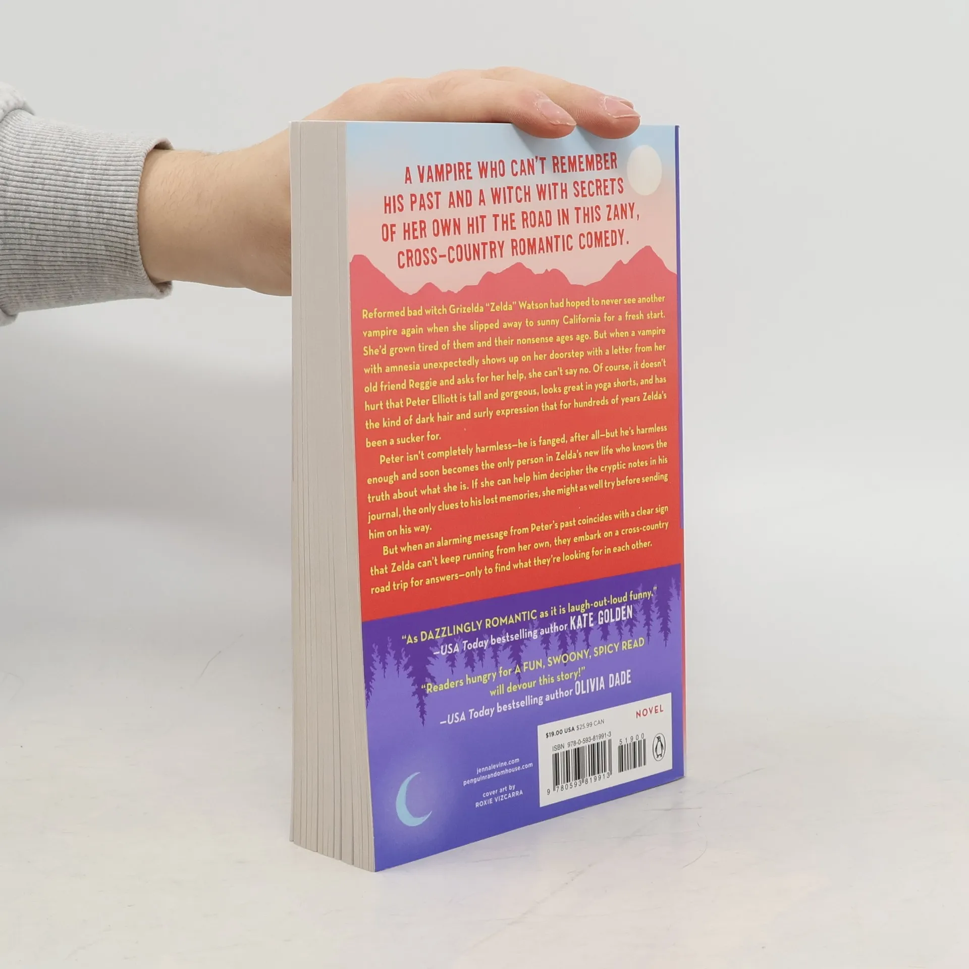 A vampire who can’t remember his past and a witch with secrets of her own hit the road in this zany, cross-country romantic comedy from beloved author Jenna Levine. Reformed bad witch Grizelda “Zelda” Watson had hoped to never see another vampire again when she slipped away to sunny California for a fresh start. She'd grown tired of them and their nonsense ages ago. But when a vampire with amnesia unexpectedly shows up on her doorstep with a letter from her old friend Reggie, and asks for her help, she can’t say no. Of course, it doesn’t hurt that Peter Elliott is tall and gorgeous, looks great in yoga shorts, and has the kind of dark hair and surly expression Zelda’s been a sucker for for hundreds of years. Peter isn’t completely harmless—he is fanged, after all—but he’s harmless enough, and soon becomes the only person in Zelda’s new life who knows the truth about what she is. If she can help him decipher the cryptic notes in his journal, the only clues to his lost memories, she might as well try before sending him on his way. But when an alarming message from Peter's past coincides with a clear sign that Zelda can't keep running from her own, they embark on a cross-country road trip for answers—only to find what they're looking for in each other.