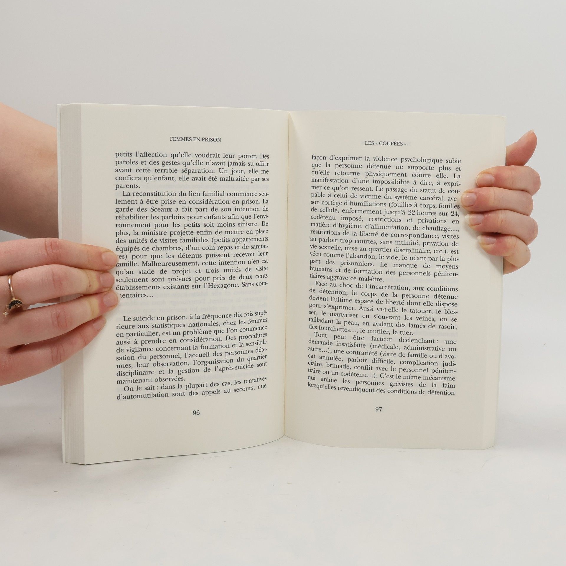 Des bébés, par nature innocents mais nés en détention, sont incarcérés à Fleury-Mérogis, la plus vaste prison pour femmes de France. Dix-huit mois durant, ils demeurent derrière les barreaux avec leurs mères avant de leur être retirés, leur infligeant ainsi une forme de "double peine".Si les Français, qui ont longtemps vécu sur le mythe des "prisons trois étoiles", ont découvert récemment le véritable visage de leur système pénitentiaire, il leur reste encore bien des vérités à regarder en face. Le sort réservé aux femmes vient au premier rang.Martine Schachtel, qui avait déjà joué un rôle pionnier dans les luttes des infirmières, s'est résolument engagée dans la difficile réforme tendant à faire bénéficier les détenus de soins médicaux dignes de ce nom. Elle raconte non seulement les blocages imposés par les corporatismes du monde pénitentiaire, mais surtout sa découverte de l'incroyable solitude de ces femmes souvent condamnées pour des faits mineurs liés à la misère, à la prostitution ou à la toxicomanie.Un document sans concession sur les grandes oubliées du débat autour de la nécessaire réforme des prisons françaises.