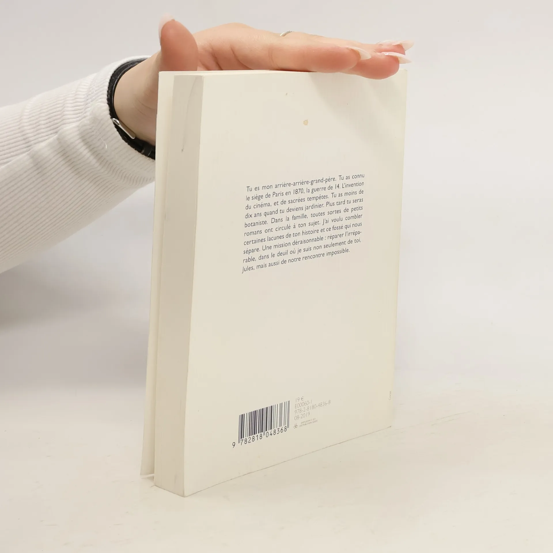 Tu es mon arrière-arrière-grand-père. Tu as connu le siège de Paris en 1870, la guerre de 14. L’invention du cinéma, et de sacrées tempêtes.Tu as moins de dix ans quand tu deviens jardinier. Plus tard tu seras botaniste.Dans la famille, toutes sortes de petits romans ont circulé à ton sujet. J’ai voulu combler certaines lacunes de ton histoire et ce fossé qui nous sépare. Une mission déraisonnable : réparer l’irréparable, dans le deuil où je suis non seulement de toi, Jules, mais aussi de notre rencontre impossible.