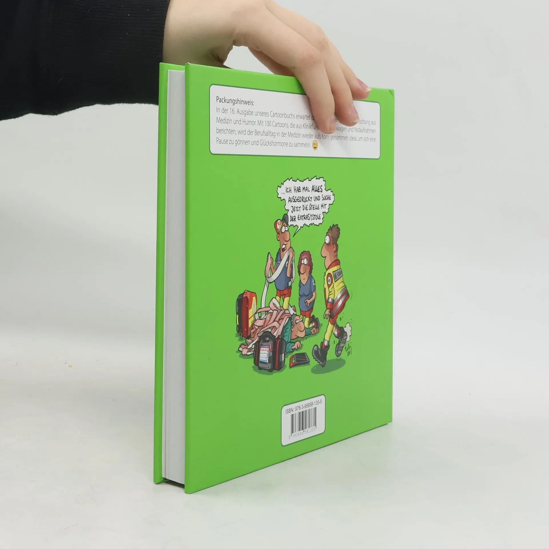 Packungshinweis: In der 16. Ausgabe unseres Cartoonbuchs erwartet dich wieder eine gelungene Mischung aus Medizin und Humor. Mit 100 Cartoons, die aus Klinikfluren, Rettungswagen und Notaufnahmen berichten, wird der Berufsalltag in der Medizin wieder aufs Korn genommen. Ideal, um sich eine Pause zu gönnen und Glückshormone zu sammeln!