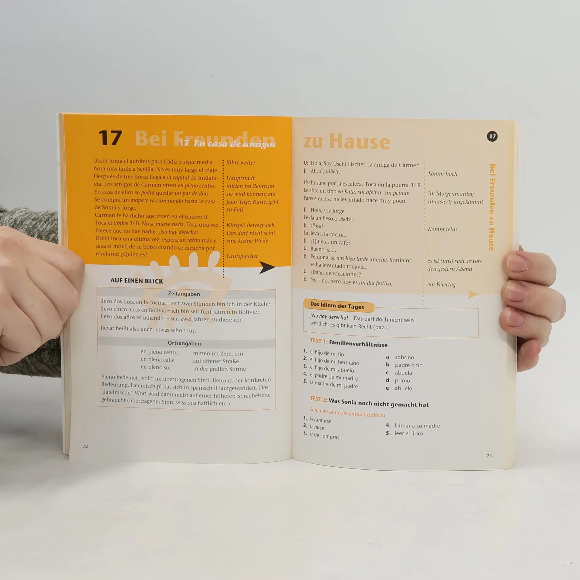 Das schlechte Gewissen meldet sich immer mal wieder. Man müsste mehr für seine Sprachkenntnisse tun. Aber da dies Zeit und Mühe kostet, bleibt es meist beim guten Vorsatz. Dieses Sprachbuch lockt Büffelmuffel mit Witz und didaktischer Raffinesse aus der Reserve und zeigt, dass Sprachenlernen kein Privileg der Emsigen oder Begabten sein muss. Eine amüsante Geschichte, die fortlaufend zu lesen ist, macht vertraut mit dem spanischen Alltag und den Sprechmitteln zu seiner Bewältigung. Ein Schwerpunkt pro Doppelseite bringt das notwendige Minimum an Wissen auf den Punkt, lockere Tests helfen dabei, das frisch Gelernte einzuüben und zu behalten.
