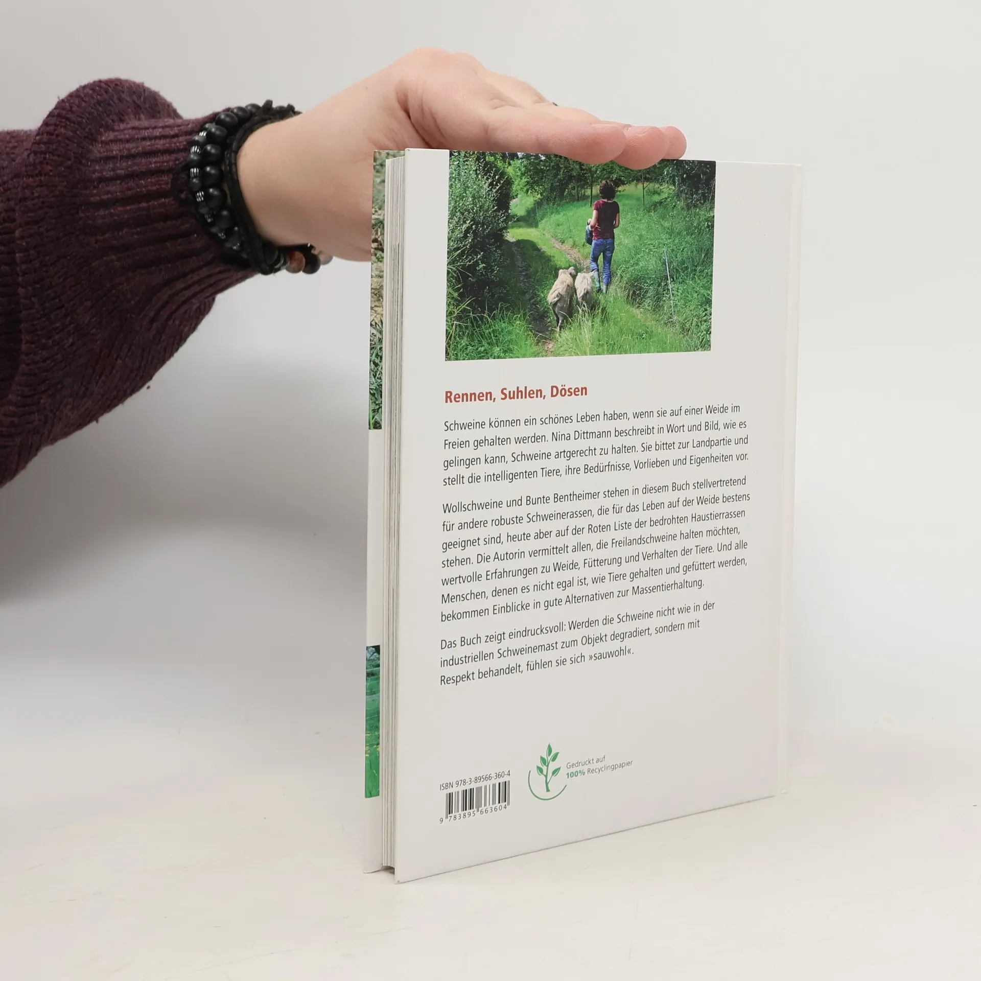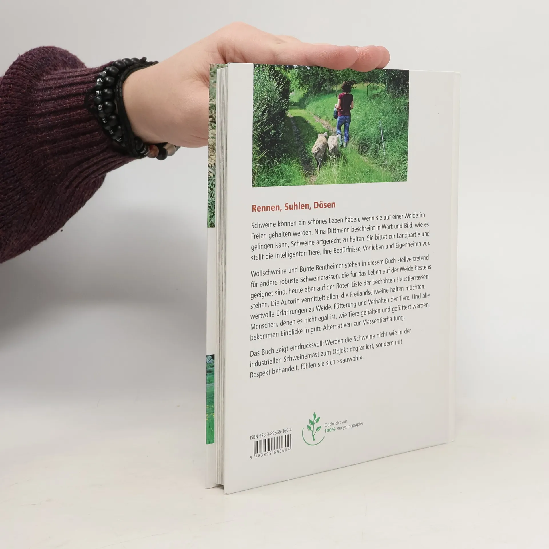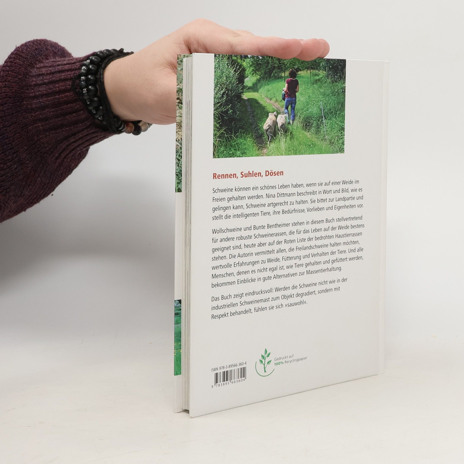 Rennen, Suhlen, Dö Schweine können ein schönes Leben haben, wenn sie auf einer Weide im Freien gehalten werden. Nina Dittmann beschreibt in Wort und Bild anschaulich, humorvoll und kompetent, wie es gelingen kann, sie artgerecht und zur Selbstversorgung zu halten. Sie lädt zur Landpartie ein und vermittelt viele interessante Details über die intelligenten Tiere, über ihre Bedürfnisse, Vorlieben und Eigenheiten.Wollschweine und Bunte Bentheimer stehen in diesem Buch stellvertretend für andere seltene Schweinerassen, die für die Freilandhaltung bestens geeignet sind und von der Gesellschaft zur Erhaltung alter und gefährdeter Haustierrassen geschützt werden.Das Buch vermittelt allen, die Freilandschweine halten möchten, wertvolle Erfahrungen zu Weide, Fütterung und Verhalten der Tiere. Und es zeigt auch, dass es Alternativen zur konventionellen Schweinemast gibt. Werden die Schweine nicht wie in der industriellen Massentierhaltung zum Objekt degradiert, sondern mit Respekt behandelt, fühlen sie sich sichtlich »sauwohl«.