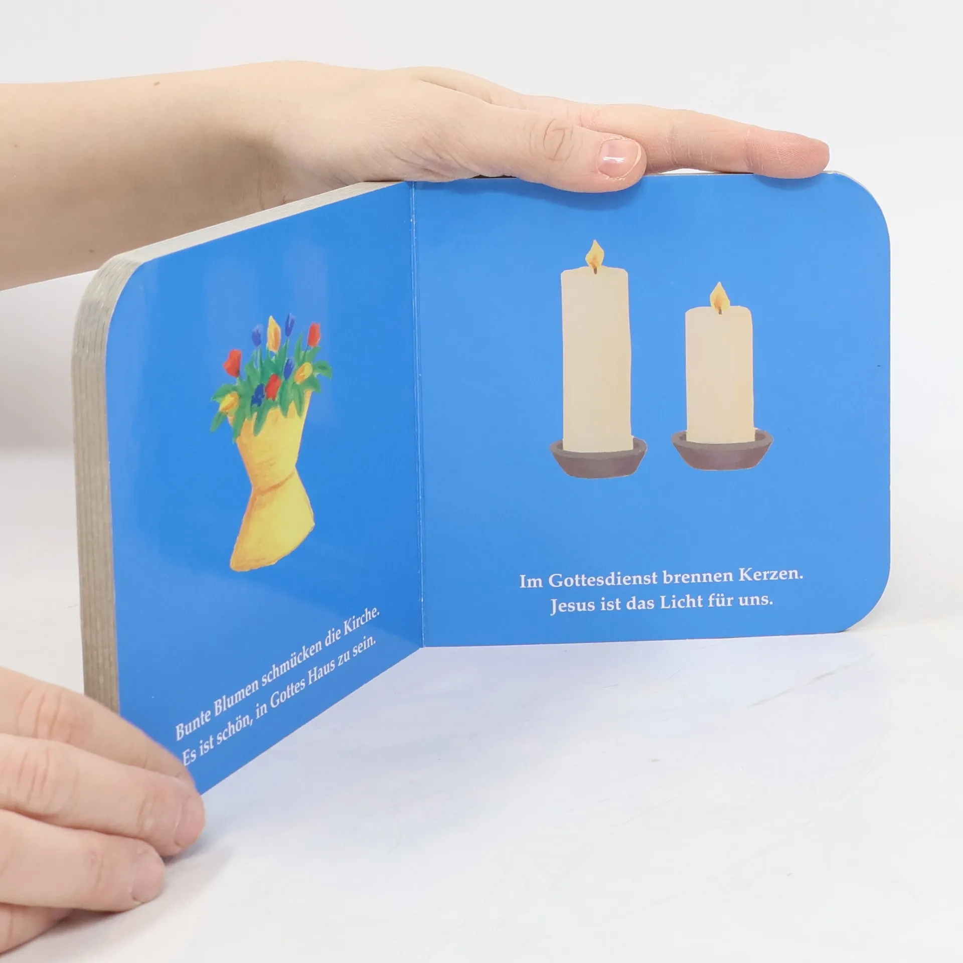 Ein farbenfrohes Buch für die Allerkleinsten, das die wichtigsten Dinge in der evangelischen Kirche vorstellt.