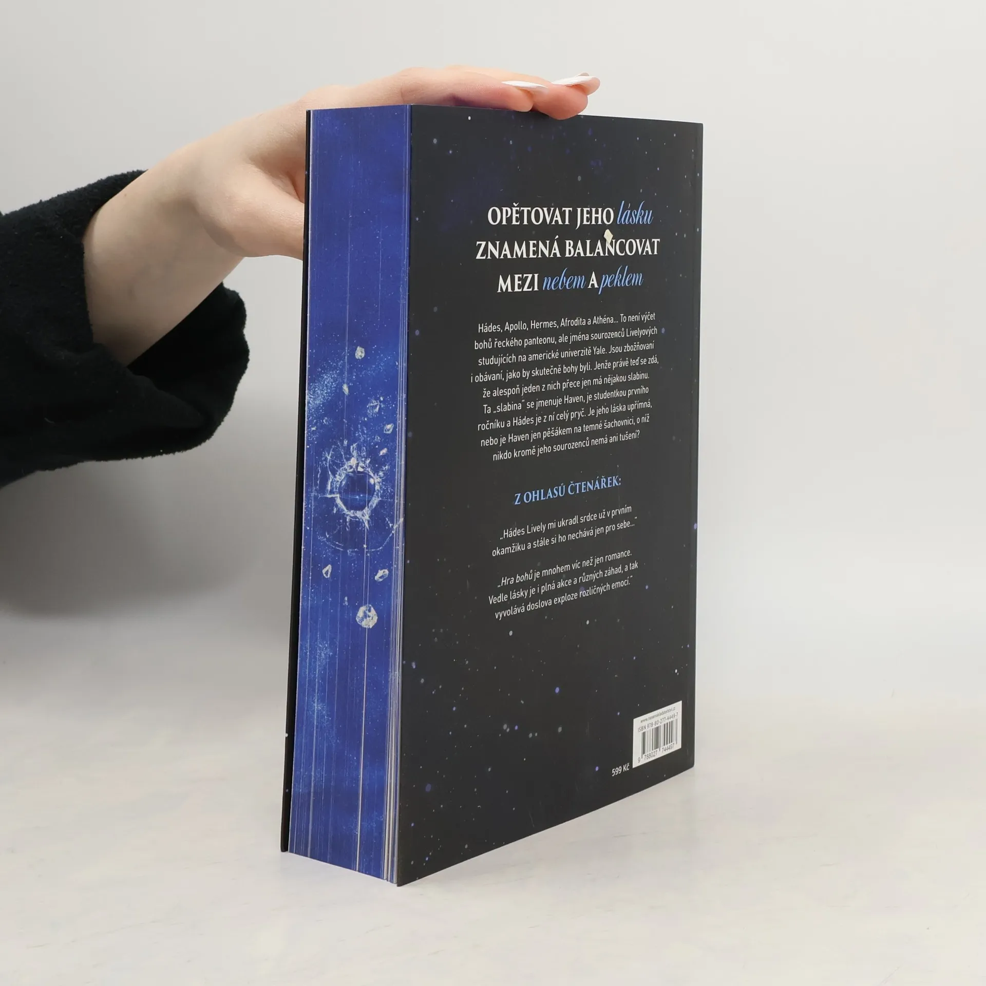 Debutový román začínající italské autorky Hazel Riley vyšel poprvé v Itálii v roce 2023. První román z doposud třídílné série z prostředí americké univerzity zaujme svým neotřelým příběhem. V něm se splétá současný život vysokoškoláků se světem vlivných a bohatých, avšak bezskrupulózních a nelítostných postav, které tahají za nitky v pozadí. Vše je ozvláštněné nádechem řecké mytologie a okořeněné pořádnou dávkou romantiky a žhavých scén. Výborně vystižená psychologie mladých dospělých přispívá k věrohodnosti celku a navzdory rozsáhlosti knihy čtenáře okamžitě vtáhne do příběhu. Hlavní postava, zprvu obyčejná dívka z chudších poměrů, se postupně stává žádoucí hvězdou, o kterou se vede nelítostný boj. Odvěká otázka, kolik jsme ochotni obětovat pro lásku a jak moc dokážeme riskovat pro milovanou osobu, zde opět získává na naléhavosti.