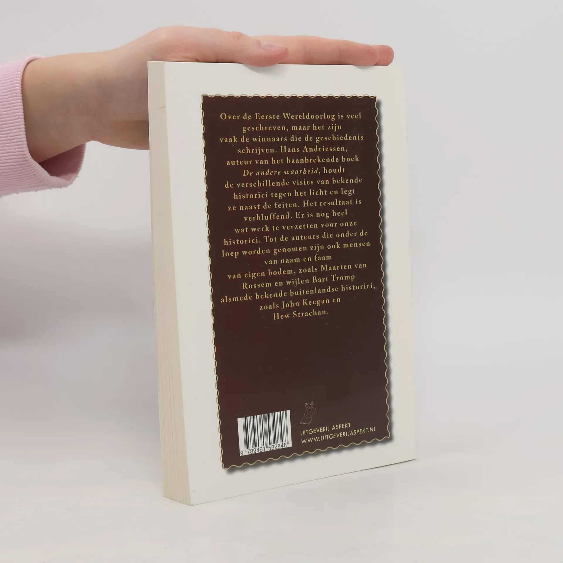 Over de Eerste Wereldoorlog is veel geschreven, maar het zijn vaak de winnaars, die de geschiedenis schrijven. Hans Andriessen, auteur van het baanbrekende boek De andere waarheid, houdt de verschillende visies van bekende historici tegen het licht en legt ze naast de feiten. Het resultaat is verbluffend. Er is nog heel wat werk te verzetten voor onze historici. Tot de auteurs die onder de loep worden genomen zijn ook mensen van naam en faam van eigen bodem, zoals Maarten van Rossem en wijlen Bart Tromp, alsmede bekende buitenlandse historici, zoals John Keegan en Hew Strachan.