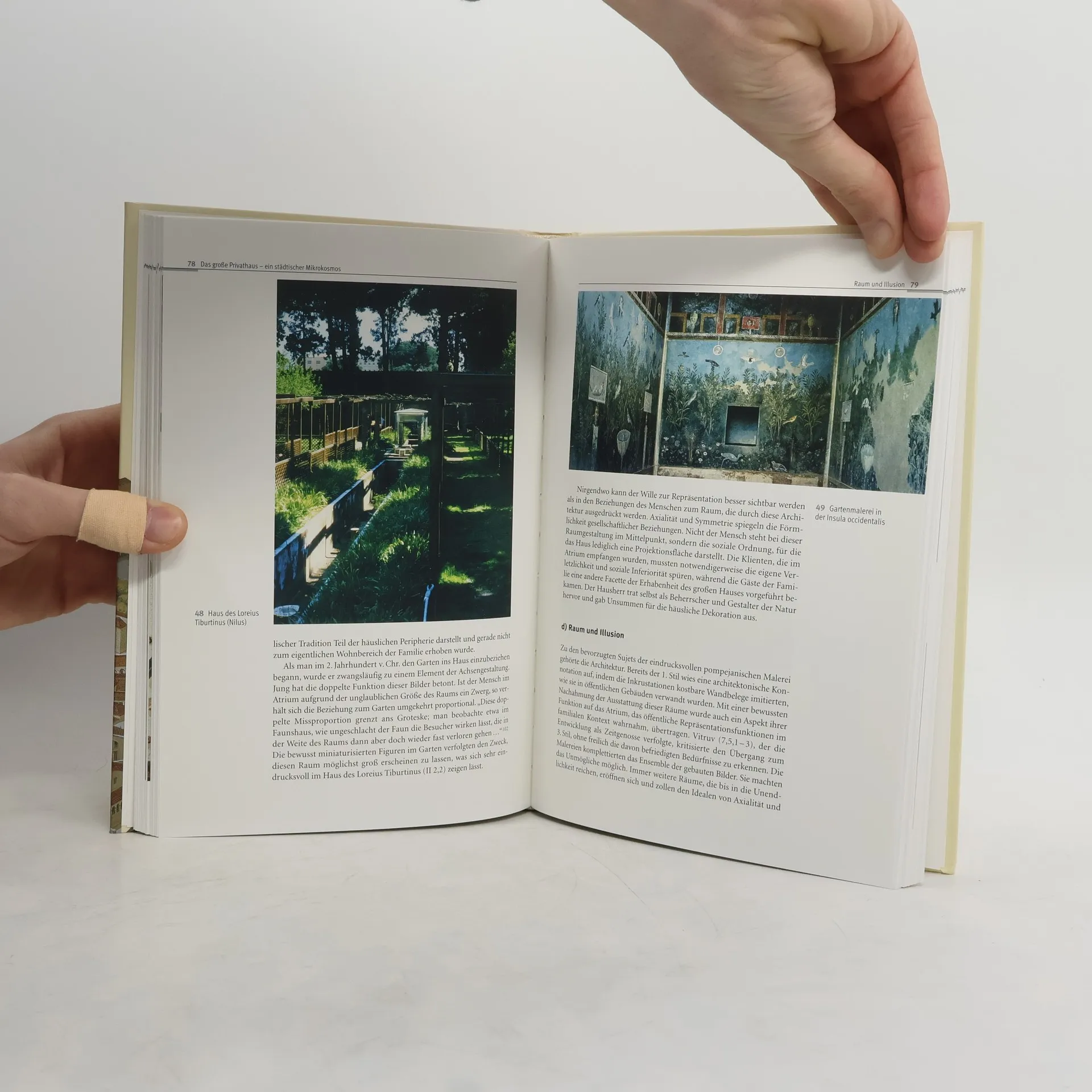 The author draws a lively picture of life in a roman city, looking at the market places, the baths, the complex private houses and their gardens, the living quarters of the poorer civilians, and finally the graves, and final resting places of the inhabitants. German text.