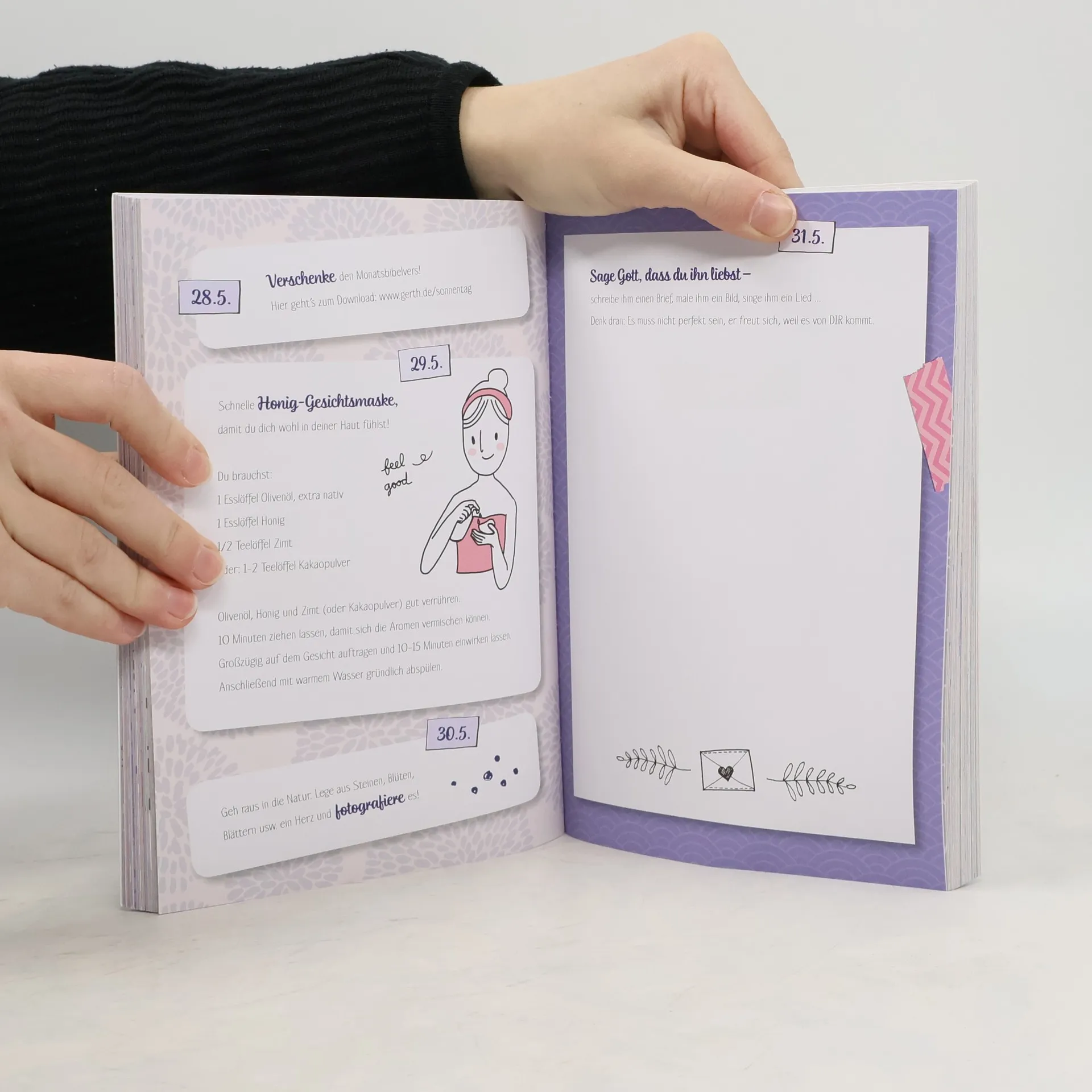 Hier kommt ein kreatives Ausprobier-, Mitmach- und Inspirationsbuch für das ganze Jahr. Es bringt frischen Wind ins Leben und den Glauben - mit einer Idee pro Tag, die Spaß macht und leicht umzusetzen ist. Mal gibt es was zu kritzeln oder auszufüllen, mal etwas zum Ausprobieren, Nachdenken, Aufschreiben, Sammeln oder Selbermachen. Es bietet jede Menge Überraschungen, wie der Glaube und das Leben dadurch beflügelt werden können. Das Besondere: Jeder Monat steht unter einem bestimmten Motto, das man 30 Tage lang auf unterschiedliche Art und Weise vertieft. Die Themen sind: Freude, Glück, Liebe, Schönheit, Stärke, Gelassenheit, Stille, Staunen, Sehnsucht, Hoffnung, Mut, Weisheit.