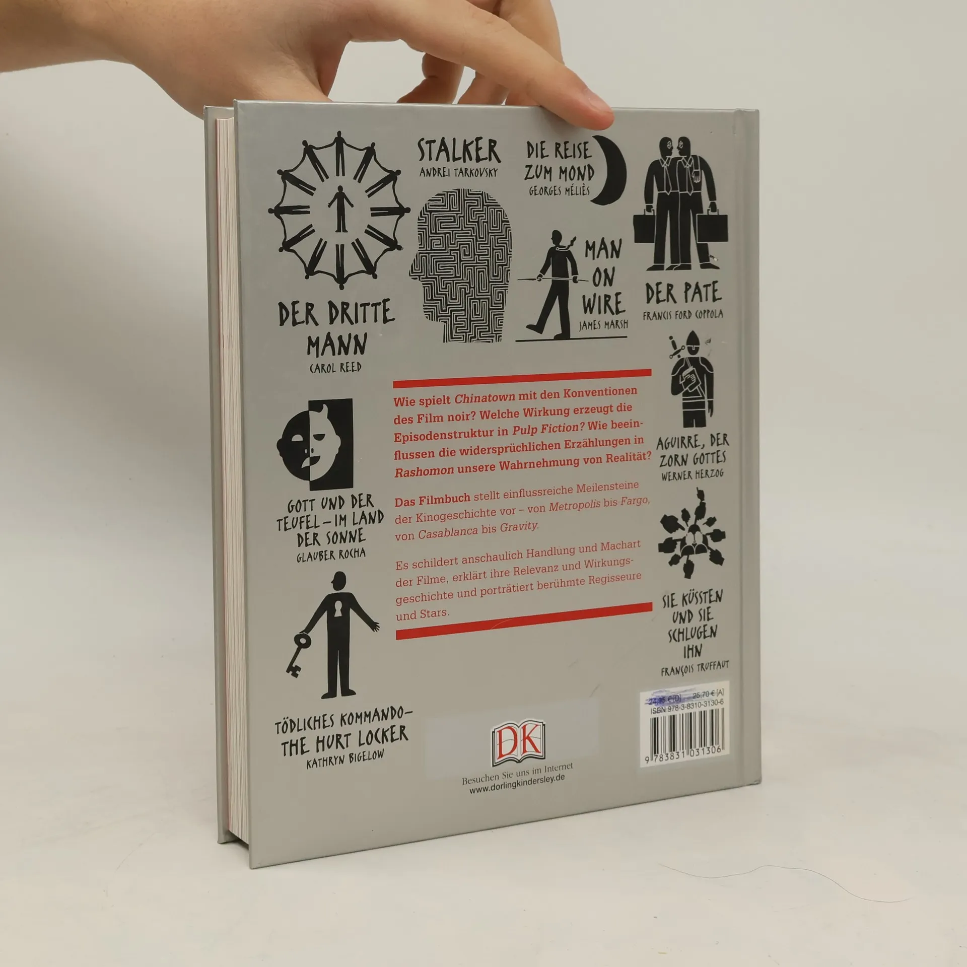 Hat Chinatown die Regeln des schwarzen Genres geändert? Was bedeutete die episodische Struktur von Pulp Fiction für das Kino? Wie wirken sich seine vielfältigen Sichtweisen auf die Realität in Rashomon aus? Dieses Buch beantwortet eine Vielzahl von Fragen zum Thema Kino und gibt einen Überblick über die besten Filme, die die siebte Kunst in den letzten hundert Jahren produziert hat. Mit klarer Sprache, Vintage-Postern, ikonischen Filmstills und Original-Infografiken untersucht The Cinema Book die Charaktere, Handlungen und Themen von mehr als hundert Filmen, die ihre Spuren hinter der großen Leinwand hinterlassen haben. Sowohl der Filmesser als auch der gelegentliche Filmfan werden in diesem Buch eine neue Perspektive auf ihre Lieblingstitel finden und filmische Schätze entdecken, die sie nicht missen möchten.