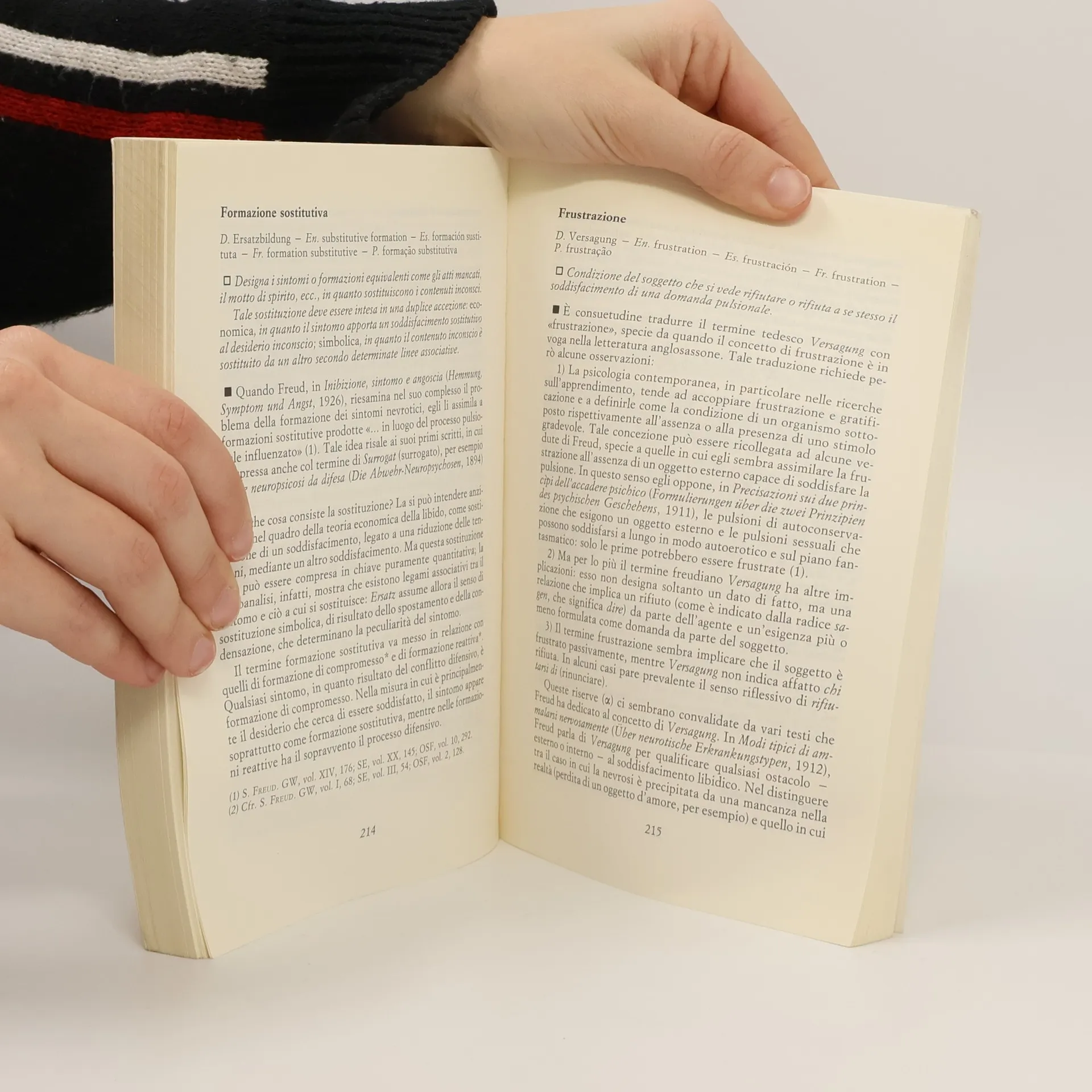 Circa 400 concetti base della teoria psicoanalitica sono elencati in ordine alfabetico e seguiti dalla loro corrispondente traduzione nelle principali lingue straniere. Poche righe in corsivo definiscono sinteticamente il significato di questi concetti e ne chiariscono l'origine e l'evoluzione all'interno del pensiero di Freud e degli altri classici.