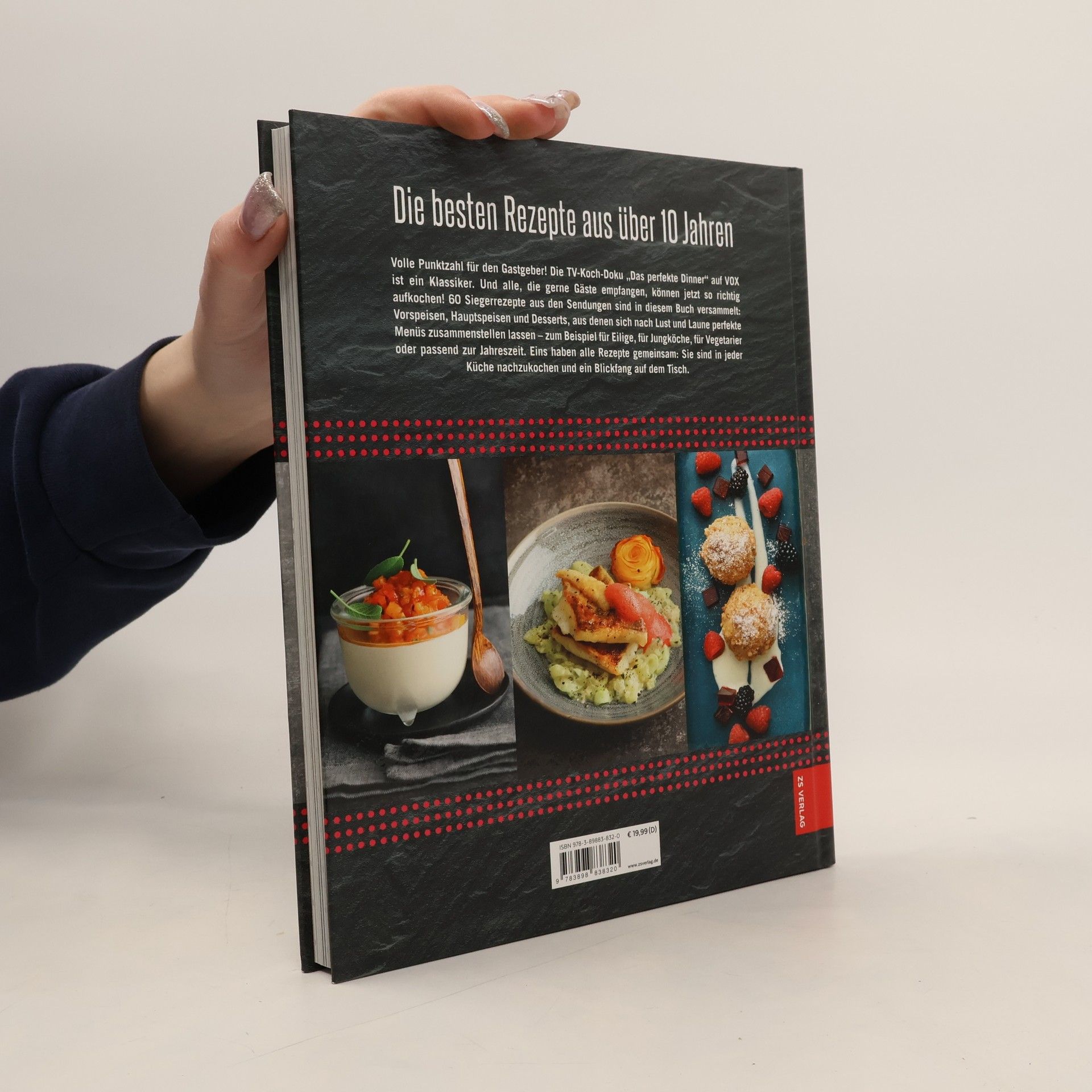 Die TV-Koch-Doku "Das perfekte Dinner" auf VOX ist Kult! Mit diesem Buch können die Fans der Sendung und alle, die gerne Gäste empfangen, die beliebtesten Gerichte aus der Sendung auch zuhause nachkochen und genießen. 60 Siegerrezepte (jedes mit Foto) der letzten Jahre sind in diesem Buch Vorspeisen, Hauptspeisen und Desserts, aus denen sich perfekte Menüs zusammenstellen lassen – zum Beispiel für die Schnelle Küche, für Verliebte, für Vegetarier oder passend zur Jahreszeit. Eins haben alle Rezepte Sie wurden von den Gästen in der Sendung perfekt bewertet, sind in jeder Küche nachzukochen und ein Blickfang auf dem Tisch.Außerdem werden wichtige Fragen rund um das Menü geklärt, zum Beispiel worauf es bei der Zeitplanung ankommt, wie man Gerichte perfekt in Szene setzt oder welche Getränke man vor und zu dem Essen reichen kann. Da können sich Ihre Gäste glücklich schätzen, wenn sie eingeladen werden!