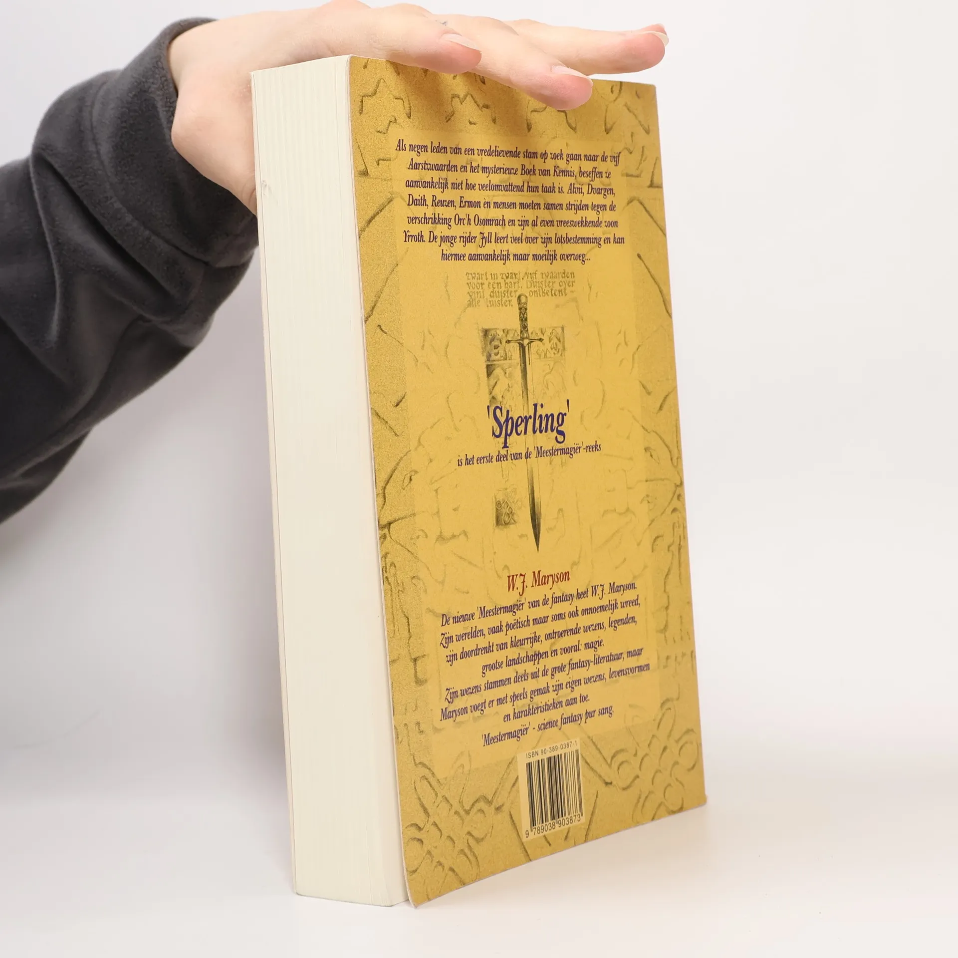 Om het onnoembare kwaad dat de wereld Aidén bedreigt te keren, begint een reisgezelschap van negen gezellen onder aanvoering van de jonge Jyll, van wie wordt gefluisterd dat hij de Ene, de Erfgenaam is, aan een gevaarvolle queeste, een speurtocht naar de Vijf Aartszwaarden en het Boek van Kennis. Het eerste zwaard: SperlingIn deze roman maakt de lezer kennis met de hoofdpersoon Jyll, een jongen die een rustig leventje leidt bij de nomaden van de Candras. Aan dit rimpelloos bestaan komt abrupt een eind als de stamverteller hem onverwacht aanwijst als aanvoerder van een reisgezelschap dat moet voorkomen dat de wereld van Jyll ten onder gaat aan het kwaad van de geheimzinnige Orc'h Osomrach, zijn zoon Yrroth en hun schare angstaanjagende dienaren. Het gevolg is dat Jyll en zijn acht gezellen beginnen aan een lange reis, met als doel het aanstormende kwaad te keren, een zoektocht naar de Vijf Aartszwaarden, waarvan Sperling het eerste is… ‘Warm aanbevolen voor diegenen die van goede fantasy houden.’ – Elise Somers