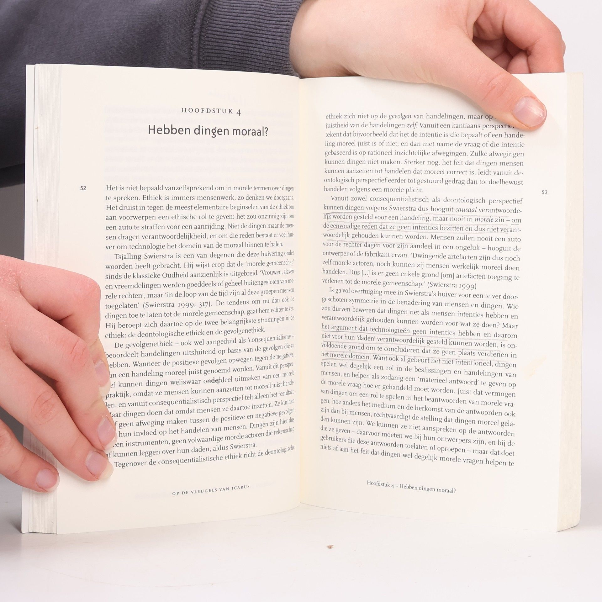 Techniek plaatst ons voortdurend voor ethische dilemma’s. Een recent ontwikkelde chip die de mannelijke vruchtbaarheid test, blijkt het ook mogelijk te maken om de spermacellen voor een meisje te scheiden van die voor een jongetje. Deze praktijk is nu nog verboden, maar wat gebeurt er als er straks een doe-het-zelf-apparaatje voor geslachtskeuze komt? En wat te denken van de Google-bril die ons direct alle beschikbare informatie geeft over de mensen en dingen om ons heen? Wat gaat dit betekenen voor menselijke relaties, voor de openbare ruimte?Er bestaat geen onafhankelijk, vooraf gegeven kader waarmee we dergelijke technologieën kunnen beoordelen, zegt Peter-Paul Verbeek. Iedere innovatie dwingt ons tot nieuwe afwegingen. Het heeft weinig zin om de vraag te stellen of we een bepaalde technologie wel of niet hadden moeten toelaten tot de samenleving. Als iets eenmaal is uitgevonden, dan is de wereld al veranderd en moeten we ook onszelf opnieuw uitvinden. Doordat echoscopie ons verantwoordelijk maakt voor aangeboren ziektes, bijvoorbeeld, veranderen ethische beslissingen rondom abortus. De eye-opener van dit boek is het inzicht dat de techniek zélf ethisch geladen is. We moeten leren omgaan met nieuwe technologieën, zoals Icarus moest leren vliegen met zijn wassen vleugels.