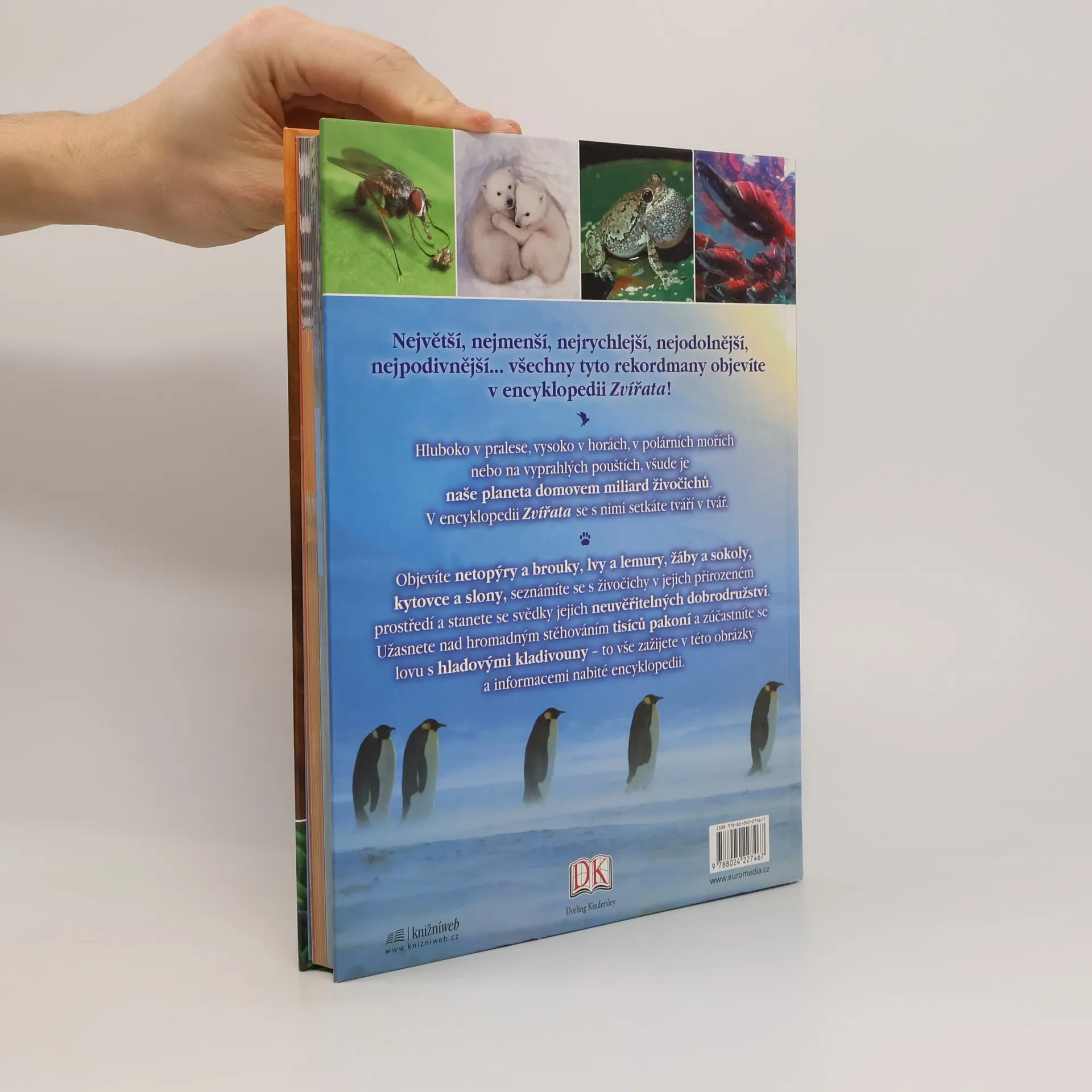 Účelem knihy je představit mladému čtenáři svět živočichů. Najde v ní všechny hlavní skupiny – savce, ptáky, ryby, plazy, obojživelníky i bezobratlé. Každá ze skupin je představena nejprve obecným popisem a po něm následuje výběr nejvýznamnějších zástupců. U každého živočicha je uvedena jeho velikost, prostředí, které obývá, zeměpisné rozšíření, délka života, stav ohrožení. Text je doplněn krásnými fotografiemi.