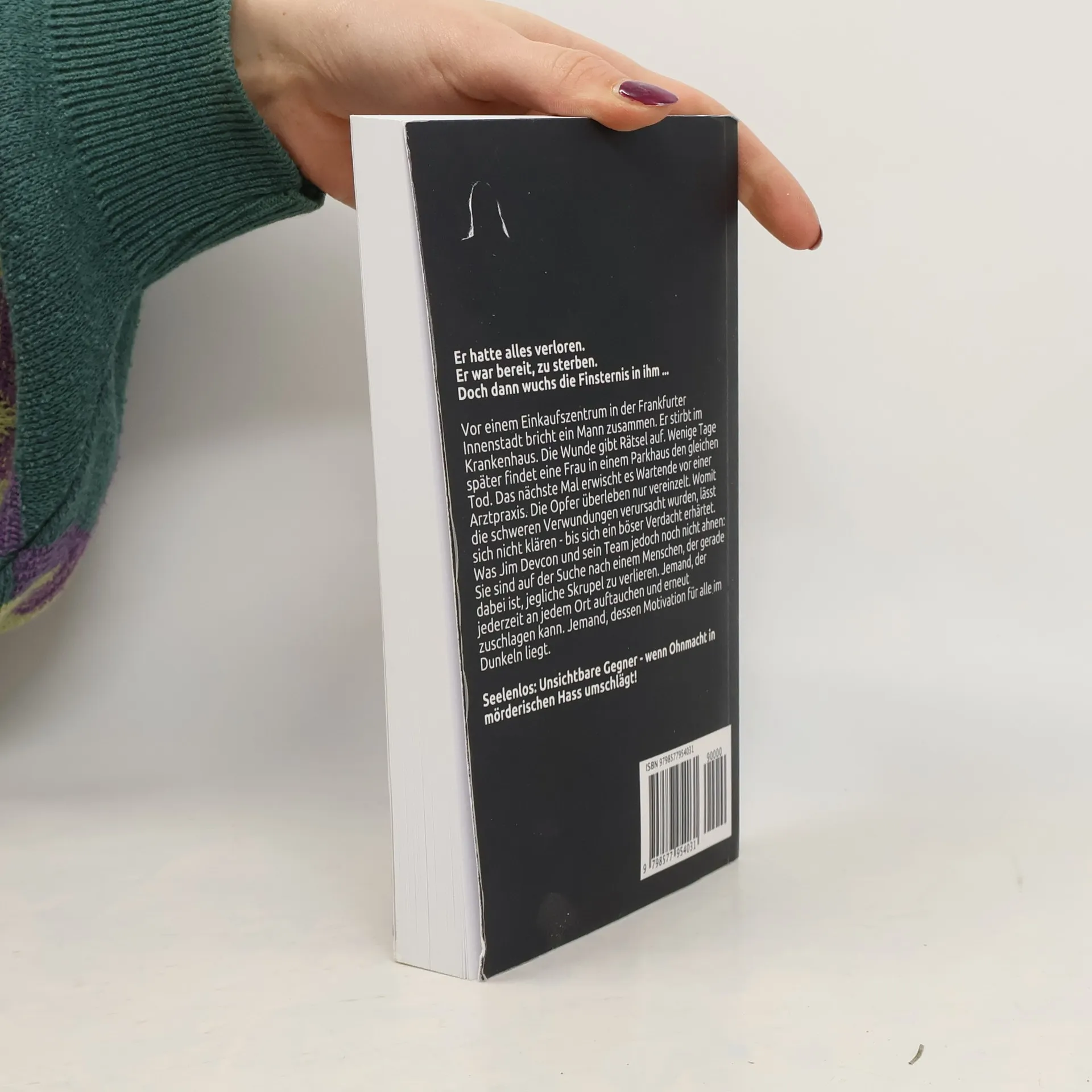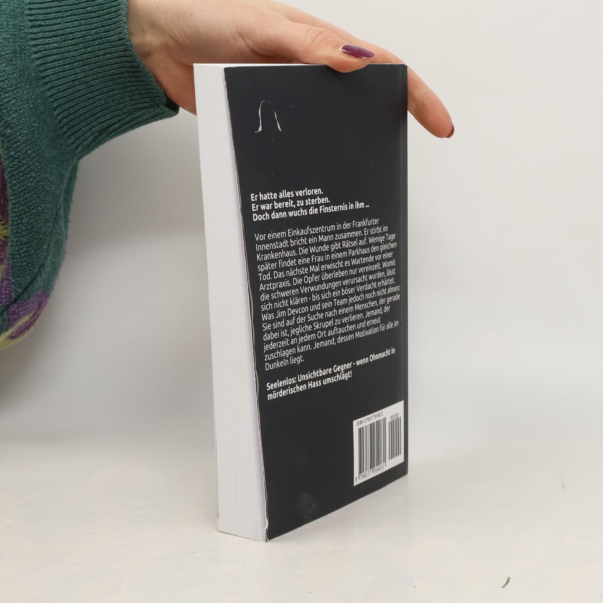 Er hatte alles verloren und war bereit zu sterben, als die Finsternis in ihm wuchs. Vor einem Einkaufszentrum in Frankfurt bricht ein Mann zusammen und stirbt im Krankenhaus. Die rätselhafte Wunde bleibt unklar. Kurz darauf findet eine Frau im Parkhaus den gleichen Tod, und bei Wartenden vor einer Arztpraxis überleben nur einige. Die Ursache der schweren Verletzungen bleibt ungewiss, bis ein böser Verdacht aufkommt. Jim Devcon und sein Team suchen nach einem Menschen, der jegliche Skrupel verloren hat und jederzeit zuschlagen kann. Die Motivation des Täters bleibt im Dunkeln, und er gehört zu den Vergessenen der Pandemie. Unsichtbare Gegner verwandeln Ohnmacht in mörderischen Hass. Der Fall ist in sich abgeschlossen und kann unabhängig von den vorherigen Bänden der Serie gelesen werden. In der Jim Devcon-Serie sind bisher folgende Titel erschienen: Lautloser Tod, Mörder wider Willen, Ein grausamer Gegner, Eine Mutter dreht durch, Seelensü Eiskalte Rache, Straße der Tränen, Seele in Lebendig begraben, Göttin der Rache, Zum Töten geboren, Wenn das Herz verstummt, Seele in Muttertat und Unsichtbare Gegner. Zudem gibt es die Sadie Engel der Toten-Reihe und weitere Bücher wie Ein Luna Walker-Roman und Manchmal muss es Mord sein.