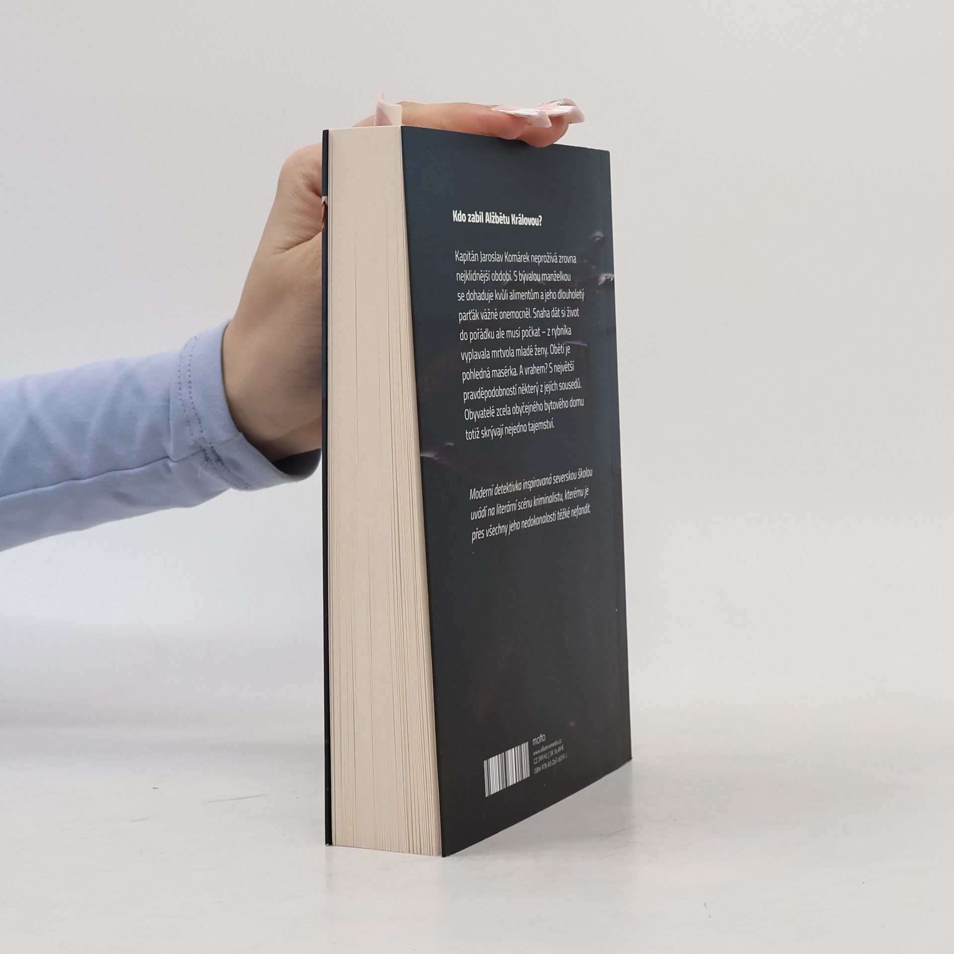Kdo zabil Alžbětu Královou? Kapitán Jaroslav Komárek neprožívá zrovna nejklidnější období. S bývalou manželkou se dohaduje kvůli alimentům a jeho dlouholetý parťák vážně onemocněl. Snaha dát si život do pořádku ale musí počkat – z rybníka vyplavala mrtvola mladé ženy. Obětí je pohledná masérka. A vrahem? S největší pravděpodobností některý z jejích sousedů. Obyvatelé zcela obyčejného bytového domu totiž skrývají nejedno tajemství. Moderní detektivka inspirovaná severskou školou uvádí na literární scénu kriminalistu, kterému je přes všechny jeho nedokonalosti těžké nefandit.