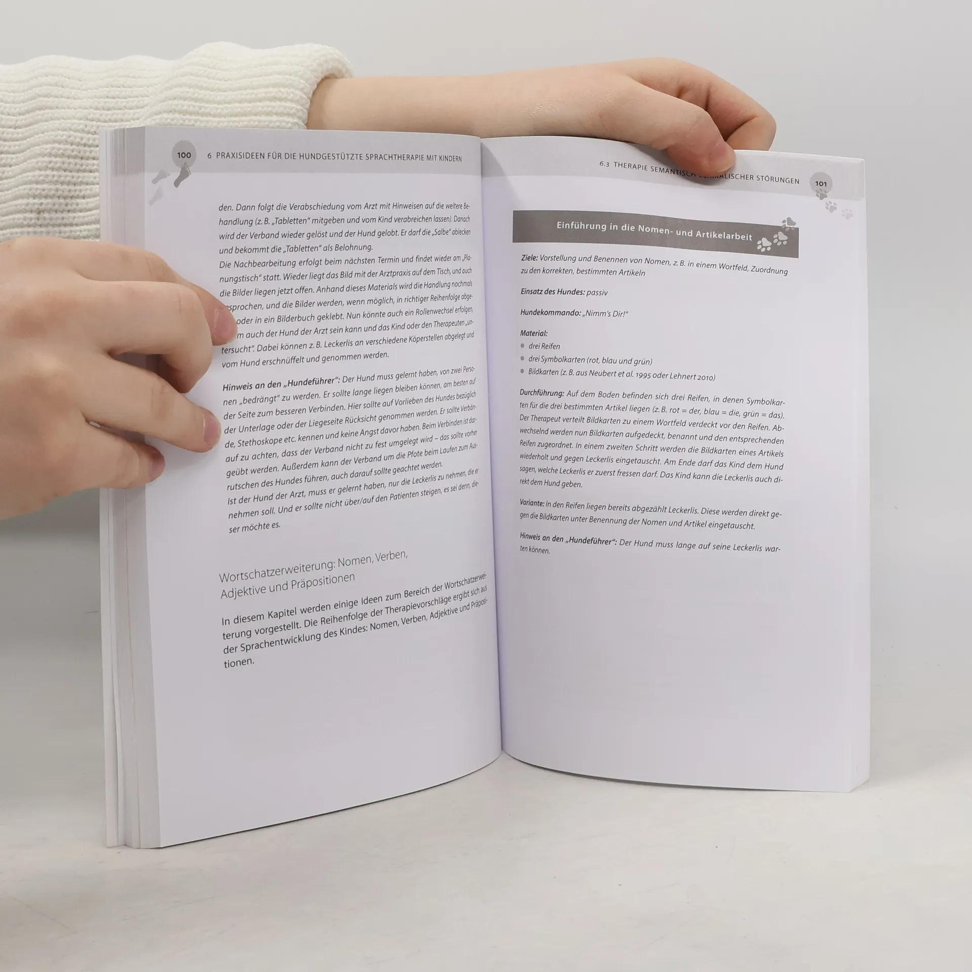 In der Sprachtherapie können Hunde die PatientInnen auf besondere Weise motivieren und die Therapie kurzweiliger, abwechslungsreicher und spannender gestalten. Die Autorin geht in diesem Praxisbuch auf wichtige Grundlagen ein: Welche Ausbildungen gibt es für Hund und TherapeutIn? Welche Versicherungs-, Tierschutz- und Hygienebestimmungen müssen Therapeuten beachten? Der Leser erhält eine Fülle von Tipps und Anregungen für die Praxis der Sprachtherapie mit dem Hund – sowohl bei Kindern als auch bei Erwachsenen. Mit über 60 Übungen wird das Buch zu einem wertvollen Fundus für alle, die in die hundgestützte Sprachtherapie „hineinschnuppern“ möchten!