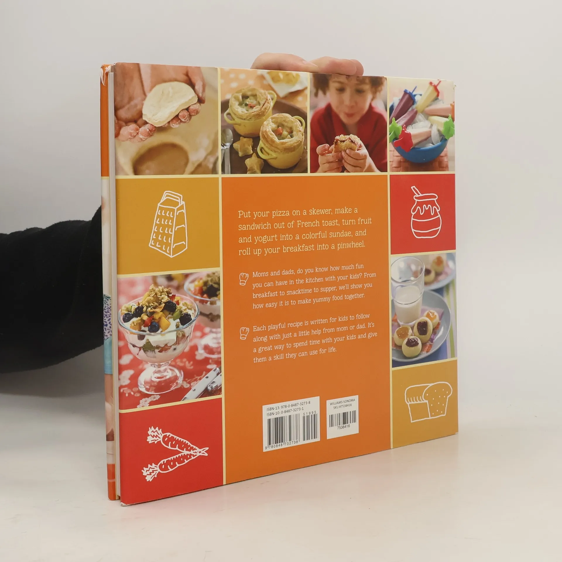 Filled with yummy, easy-to-prepare recipes and lots of ideas for making wholesome food fun, this cookbook encourages kids to get creative in the kitchen and start cooking. Each recipe features steps written just for kids so they can follow along with a little help from mom and dad. Whimsical illustration and colorful photos grab their attention and keep them engaged.Recipes for delicious, home-spun breakfasts, snacks, suppers, and desserts, such as French toast skewers with blueberry sauce, mini burgers with sweet potato fries, granola bites, orange-yogurt pops, and snowball cupcakes, will have your kids wanting to be in the kitchen cooking with you time and time again. Cooking with your kids is not only a great way to spend time together, it also teaches kids about food and entices them to try new flavors.