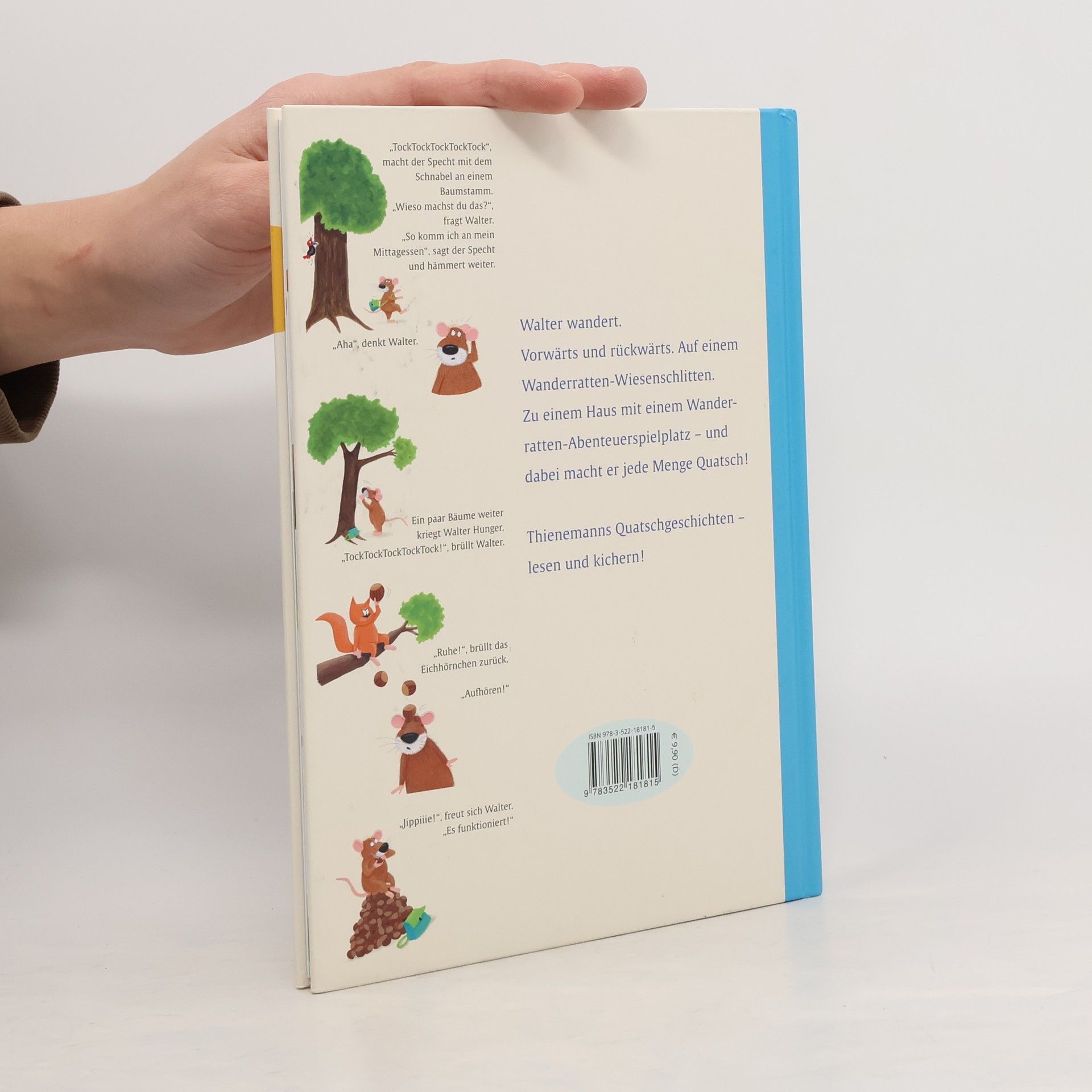 Walter ist eine Wanderratte. Also geht er wandern. Er lernt vom Specht, wie man sich aus einem Baum Essen beschafft, findet einen echten Wanderratten-Wiesenschlitten, bekommt von Zweibeinern ein wunderschönes Haus mit Wanderratten-Abenteuerspielplatz zur Verfügung gestellt - und macht jede Menge Quatsch! Reihe „Thienemanns Quatschgeschichten“ - lesen und kichern! Ab 6 Jahren