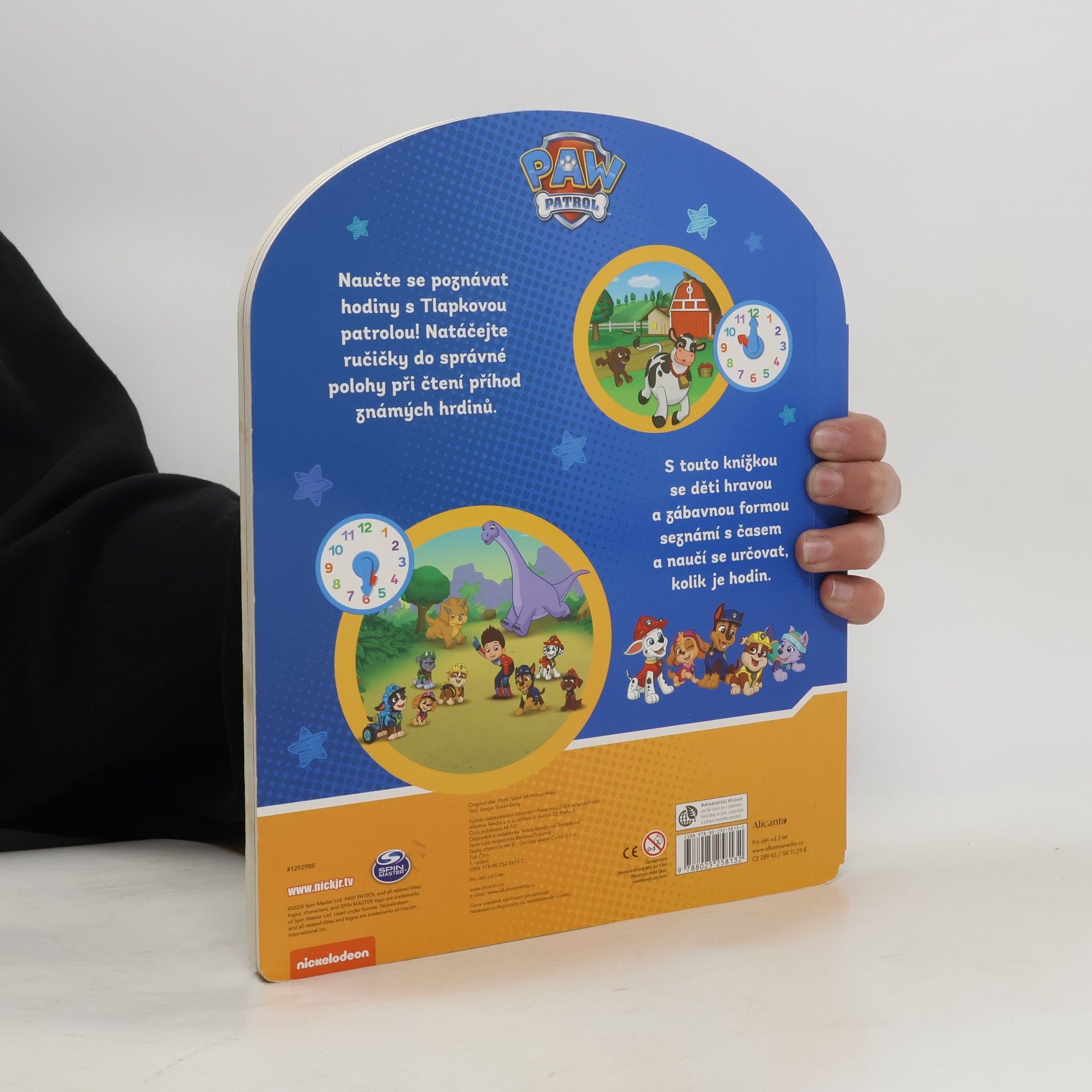 Interaktivní knížka s ciferníkem a oblíbenými hrdiny z Tlapkové patroly. Když nejsou tlapky zrovna na misi, najdou si vždy čas na zábavu. Z této knihy můžete zjistit, co dělají dopoledne, odpoledne a večer a přitom rozpohybovat malou a velkou ručičku na ciferníku hodin.