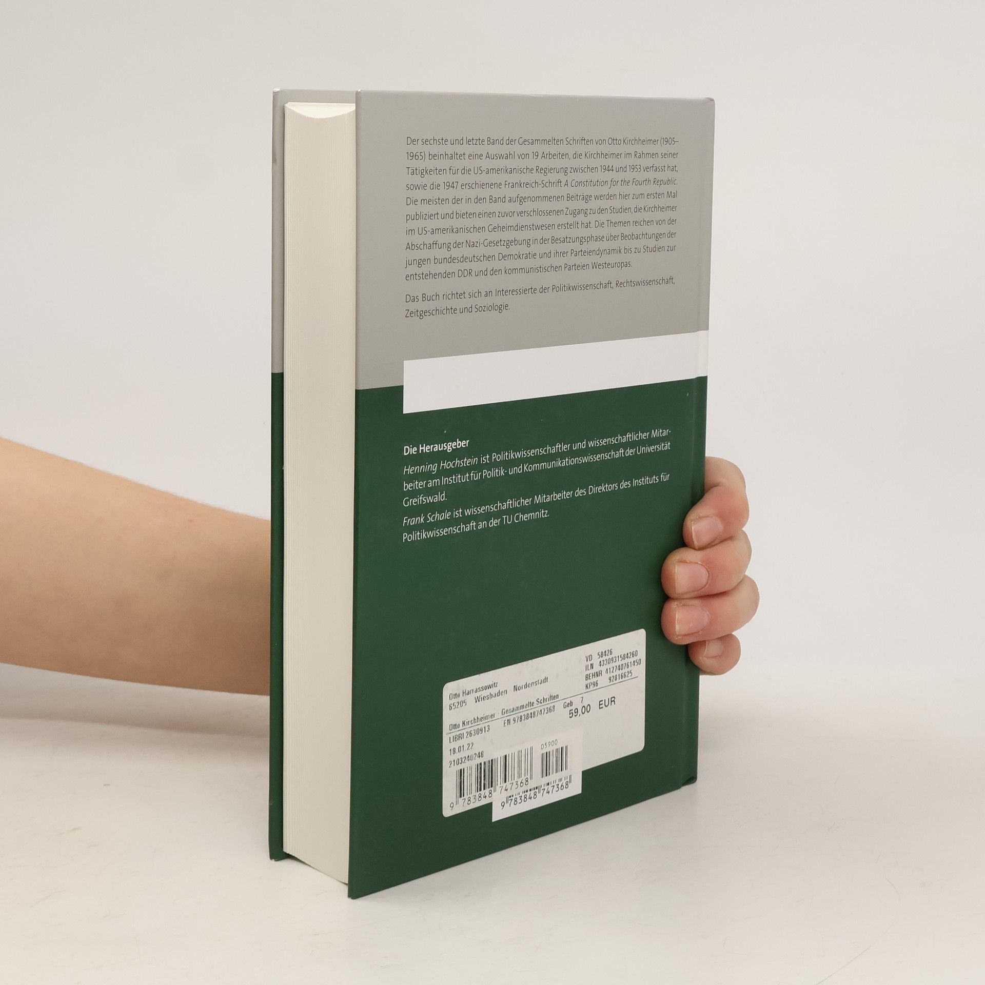 Der sechste und letzte Band der Gesammelten Schriften von Otto Kirchheimer (1905-1965) mit dem Titel Politische Analysen fur das OSS und Department of State beinhaltet eine Auswahl von 19 Arbeiten, die Kirchheimer im Rahmen seiner Tatigkeiten fur die US-amerikanische Regierung zwischen 1944 und 1953 verfasst hat, sowie die 1947 erschienene Frankreich-Schrift A Constitution for the Fourth Republic. Die meisten der in den Band aufgenommenen Beitrage werden hier zum ersten Mal publiziert und bieten einen zuvor verschlossenen Zugang zu den Studien, die Kirchheimer im US-amerikanischen Geheimdienstwesen erstellt hat. Die Themen reichen von der Abschaffung der Nazi-Gesetzgebung in der Besatzungsphase uber Beobachtungen der jungen bundesdeutschen Demokratie und ihrer Parteiendynamik bis zu Studien zur entstehenden DDR und den kommunistischen Parteien Westeuropas. Eine ausfuhrliche Einleitung erlautert das komplexe Institutionengefuge, in dem Kirchheimer seine Geheimdienstkarriere absolviert hat. Aufgelistet werden zudem alle weiteren Arbeiten Kirchheimers fur das US-amerikanische Geheimdienstwesen. Abgeschlossen wird der Band mit einem umfangreichen Sach- und Personenregister. Das Buch richtet sich an Interessierte der Politikwissenschaft, Rechtswissenschaft, Zeitgeschichte und Soziologie.
