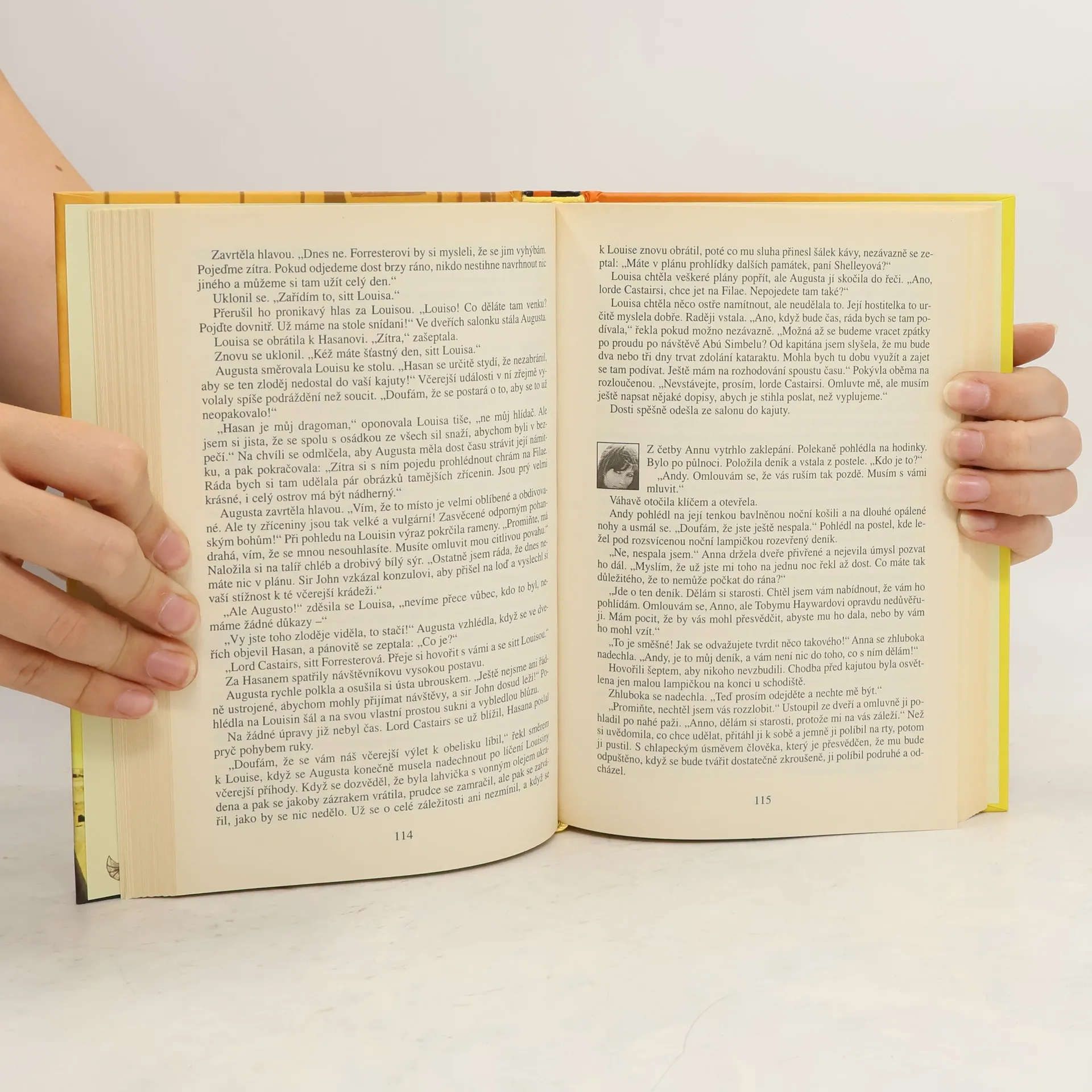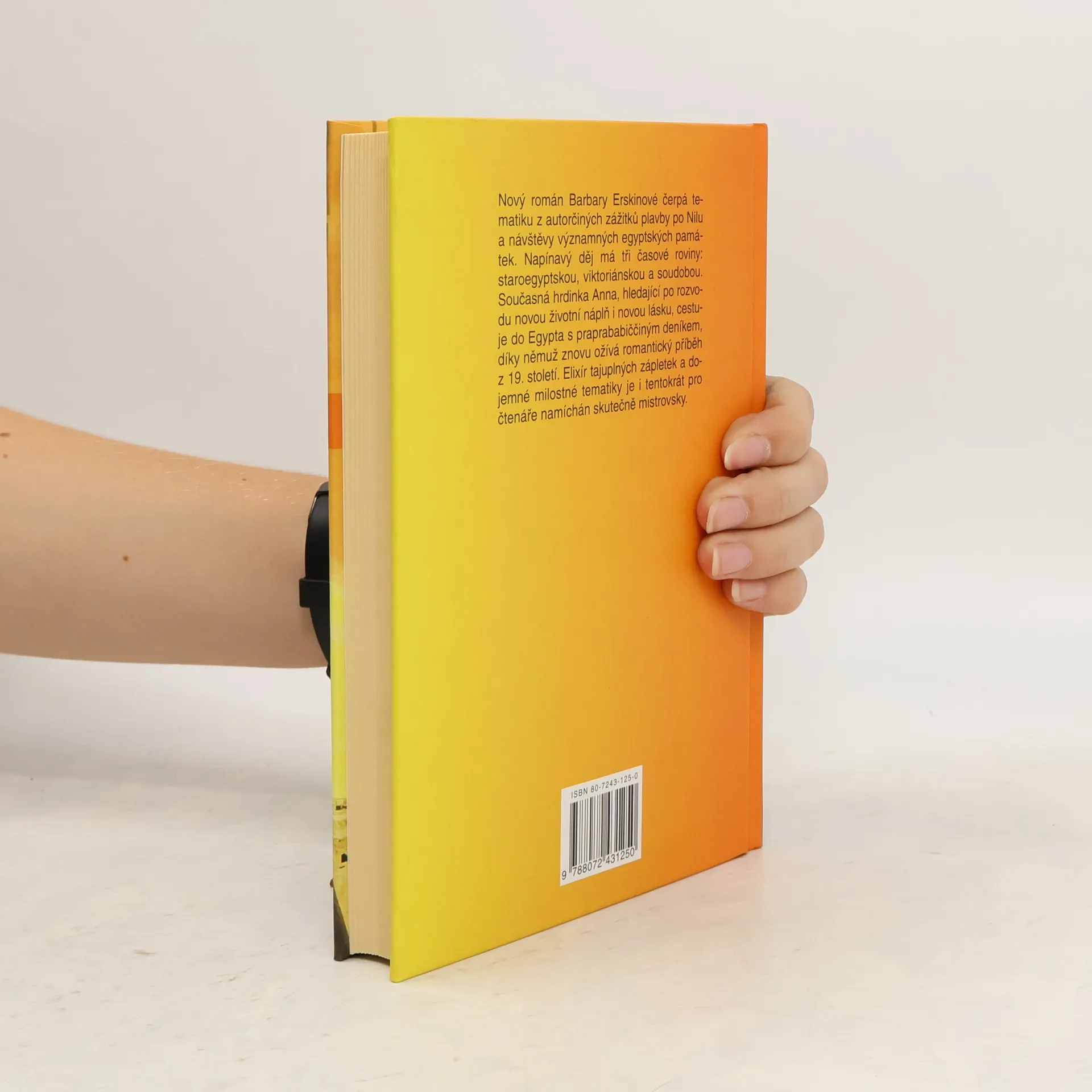 Nový román Barbary Erskinové čerpá tematicky z autorčiných zážitků plavby po Nilu a návštěvy egyptských památek. Napínavý děj má dokonce tři časové roviny: staroegyptskou, viktoriánskou a soudobou. Současná hrdinka Anna, hledající po rozvodu novou životní náplň i novou lásku, cestuje do Egypta s praprababiččiným deníkem, díky němuž ožívá romantický příběh z 19. století. Elixír taju-plných zápletek a dojemné milostné tematiky je pro čtenáře namíchán skutečně mistrovsky. S knihou určitě zapomenete na starosti všedního dne.