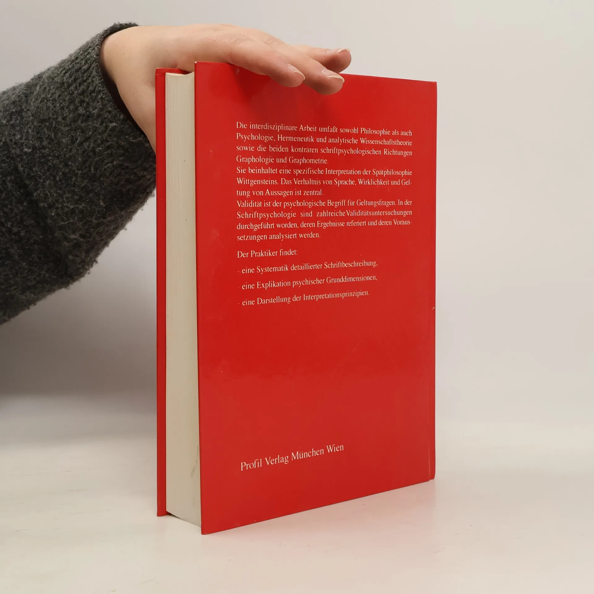Die interdisziplinäre Arbeit umfaßt sowohl Philosophie als auch Psychologie, Hermeneutik und analytische Wissenschaftstheorie sowie die beiden konträren schriftpsychologischen Richtungen Graphologie und Graphometrie