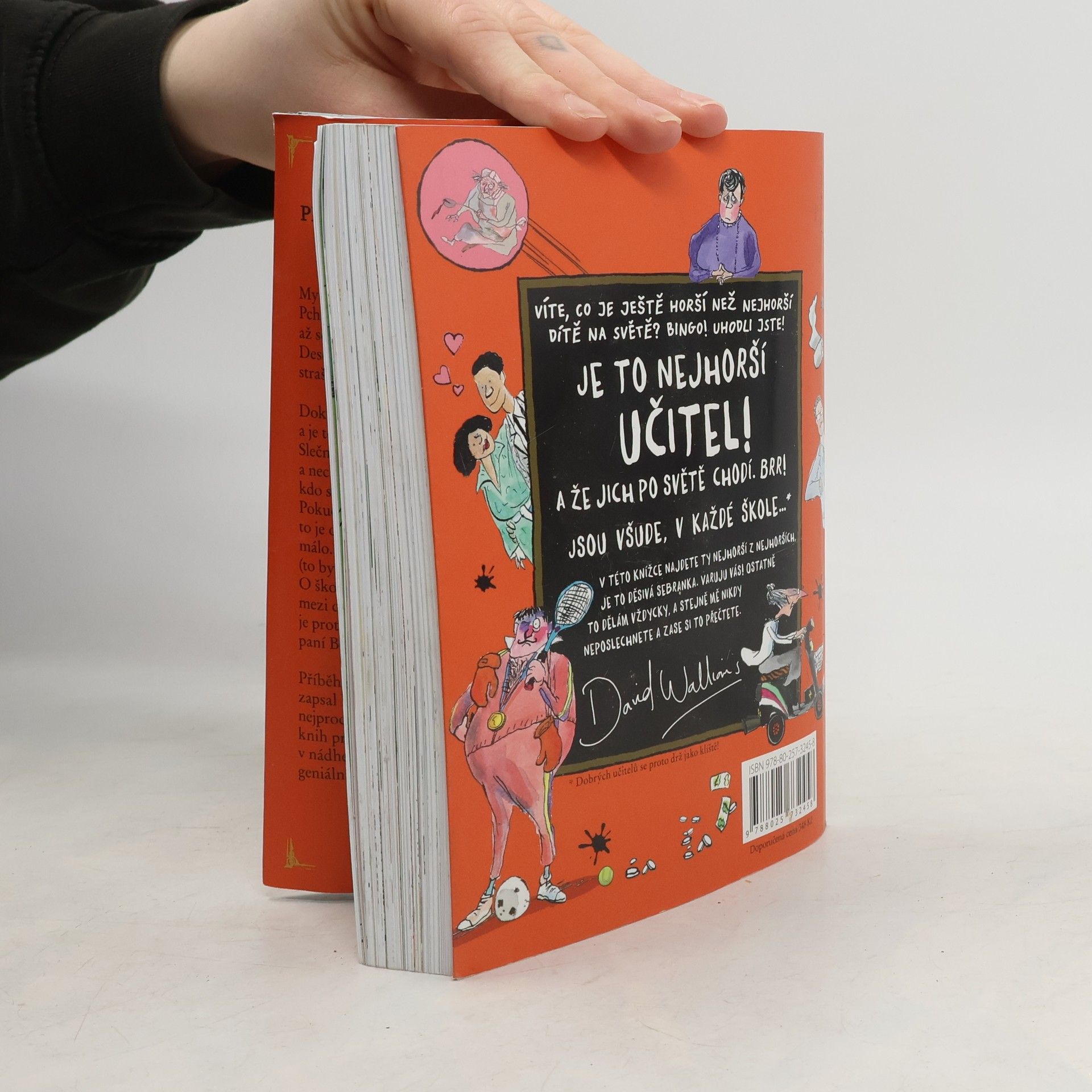 Miliony dětských čtenářů v mnoha zemích, kteří se bavili nad Walliamsovými knihami o nejhorších dětech na světě, se můžou těšit na povedenou sbírku děsivých dospělých, ba co hůř, těch nejděsivějších dospělých vůbec: učitelů. Myslíte si, že vaši učitelé jsou příšerní? Jen počkejte, až poznáte tuhle sebranku! Desítka nádherně odporných pedagogů vás zaručeně donutí dát se na bezhlavý útěk ze školních vrat. Jeden z učitelů trpí nevýslovným strachem, no považte, z dětí! Jiná učitelka se věčně vzteká a nechá po škole každého, kdo se jí nestačí vyhnout, další učí přírodní vědy a je napůl člověk, napůl odporný smrdutý netvor... a to ještě zdaleka není všechno!