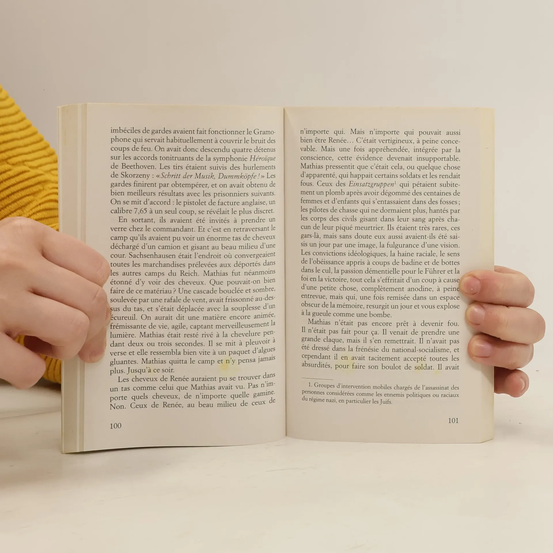 Une rencontre improbable... Décembre 1944. C'est la contre-offensive allemande dans les Ardennes belges. Pris de panique, un curé confie Renée, une petite fille juive de 7 ans, à deux soldats américains. Ce sont en fait des SS infiltrés, chargés de désorganiser les troupes alliées. Les deux nazis décident d'exécuter la fillette. Au moment de tirer, Mathias, troublé par le regard de l'enfant, tue l'autre soldat. Commence dès lors une cavale, où ils verront le pire, et parfois le meilleur, d'une humanité soumise à l'instinct de survie. Aucun personnage de ce roman palpitant n'est blanc ou noir. La guerre s'écrit en gris taché de sang. Une écriture efficace et limpide.