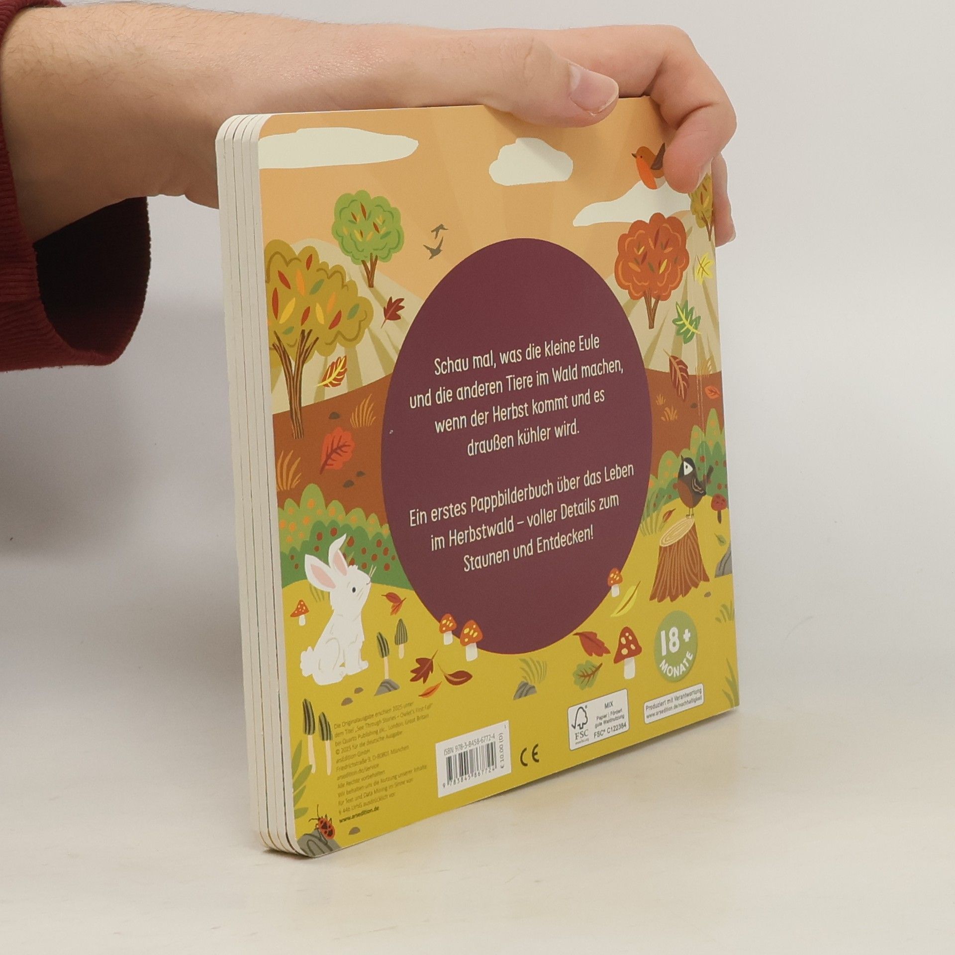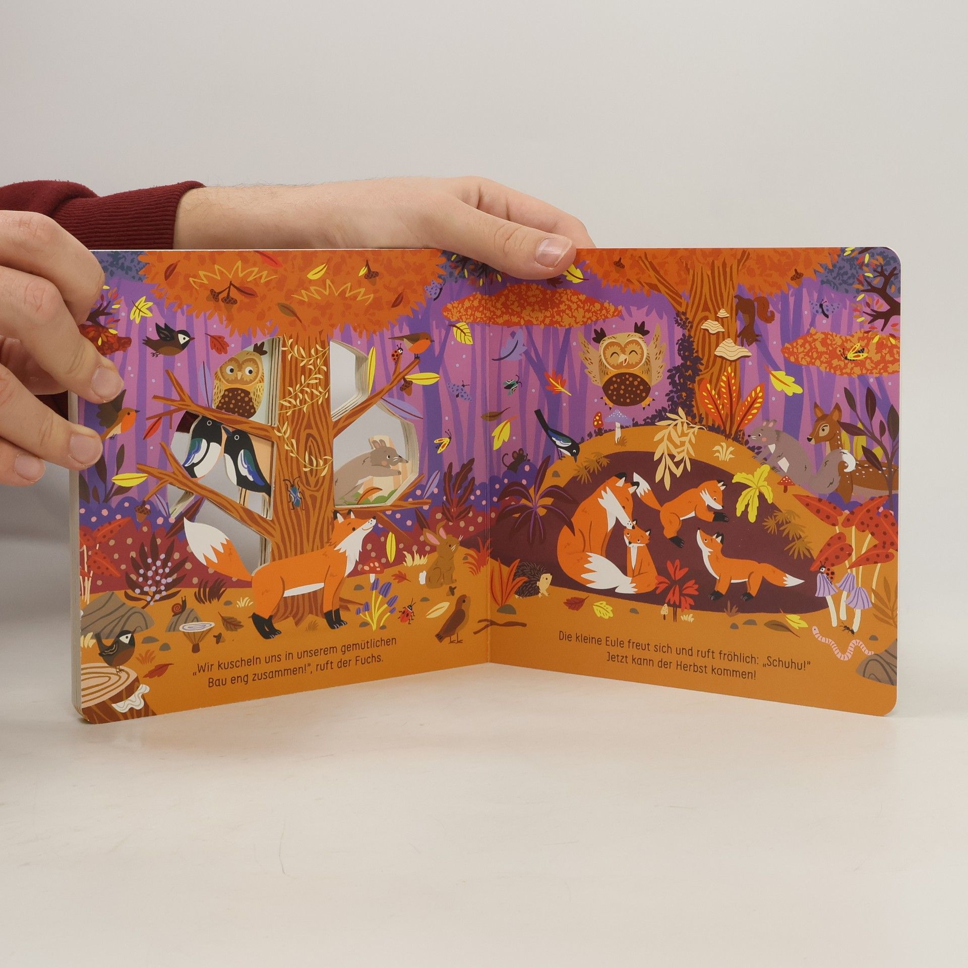 Hurra, der Herbst ist da! Mit den ersten fallenden Blättern wird es kühler im Wald. Begleite die kleine Eule durch ihren ersten Herbst. Das Eichhörnchen legt Vorräte für den Winter an und der Vogel baut ein warmes Nest – aber was macht eigentlich der Fuchs? Dieses detailreiche Pappbilderbuch nimmt die Kleinsten mit auf einen Streifzug durch den herbstlichen Wald mit all seinen Bewohnern. Stimmungsvolles erstes Jahreszeitenbuch Farbenfrohe, kindgerechte Illustrationen auf 4 Doppelseiten laden zum Entdecken ein. Die Ausstanzungen zeigen den herbstlichen Wald in all seiner Fülle. Der spannende 3D-Effekt macht das Buch zu einem besonderen Erlebnis. Passend zum Herbst: In herbstlichen Waldszenen gibt es viel zu entdecken Großer Entdeckerspaß: Detailreiche Bilder regen die Fantasie an und bieten zahlreiche Gesprächsanlässe für Eltern und ihre Kindern ab 18 Monaten Liebevoll illustriert: Stimmungsvolle Illustration vonMarijke Buurlage entführen in die bunte Herbstwelt Mit Spieleffekt: Stabile Ausstanzung erzeugen einen spannenden 3D-Effekt und machen das Buch zu einem besonderen Erlebnis. Perfekt für kleine Kinderhände: Mit dicken Pappeseiten und handlichem Format Geprüfte Qualität: Das Buch unterliegt strengen Sicherheitsanforderungen und regelmäßigen Kontrollen nach europäischer Spielzeugsicherheitsrichtlinie