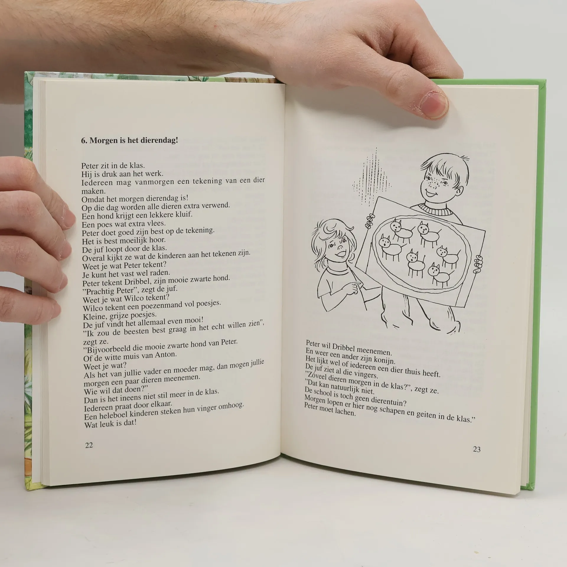 Peter en Jolanda krijgen een klein poesje. Als het dierendag is, mogen hond en kat mee naar school. Vanaf ca. 8 jaar.