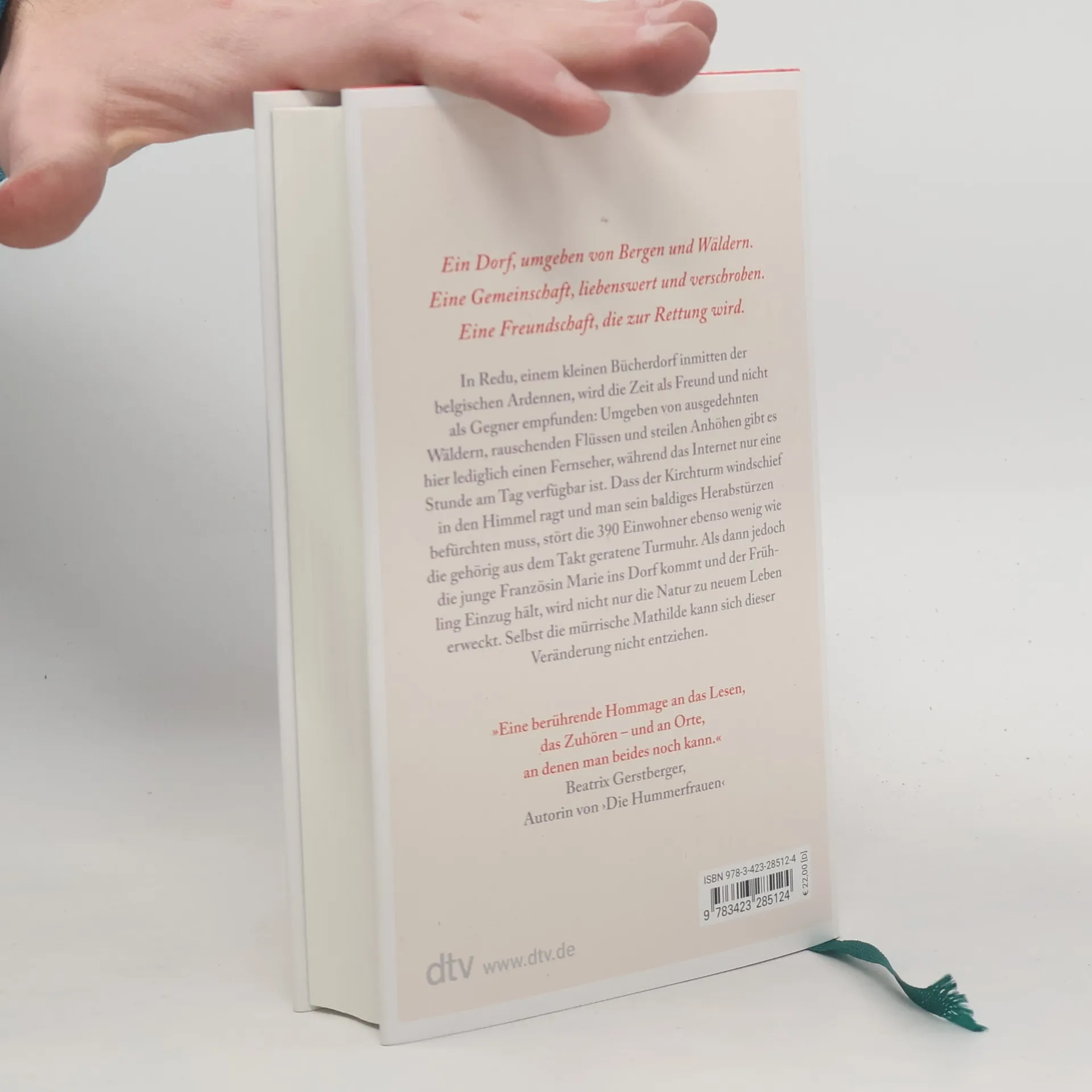 Warmherzig und entschleunigend – ein Roman, der einfach nur gut tut In Redu, einem kleinen Bücherdorf inmitten der belgischen Ardennen, wird die Zeit als Freund und nicht als Gegner empfunden: Umgeben von ausgedehnten Wäldern, rauschenden Flüssen und steilen Anhöhen gibt es hier lediglich einen Fernseher, während das Internet nur zwischen 19 und 20 Uhr verfügbar ist. Dass der Kirchturm windschief in den Himmel ragt und man sein baldiges Herabstürzen befürchten muss, stört die 390 Einwohner ebenso wenig wie die gehörig aus dem Takt geratene Turmuhr. Als dann jedoch die junge Französin Marie ins Dorf kommt und der Frühling Einzug hält, wird nicht nur die Natur zu neuem Leben erweckt. Selbst die mürrische Mathilde kann sich dieser Entwicklung nicht entziehen ...